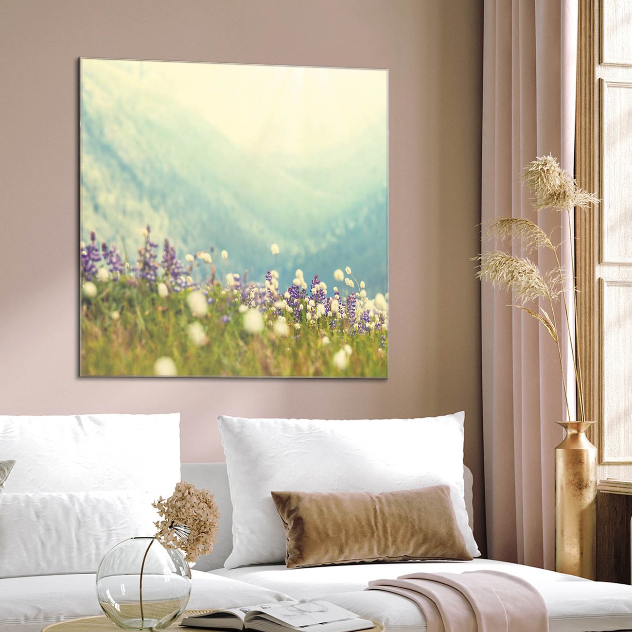 Unsere einzigartigen Glasbilder im Querformat von banjado mit Motiv Bergwiese sind der absolute Hingucker! Unsere Banjado Glasbilder sind sehr begehrt, weil sie top verarbeitet sind und sich ganz leicht montieren lassen. Schon mit wenigen Handgriffen hängen sie an der Wand und strahlen mit höchster brillianz. Durch die Ramenlose Herstellung schwebt das Echtglasbild förmlich an der Wand. Das Motiv erscheint besonders ausdrucksstark und hochwertig und ist hinter dem Echtglas geschützt.