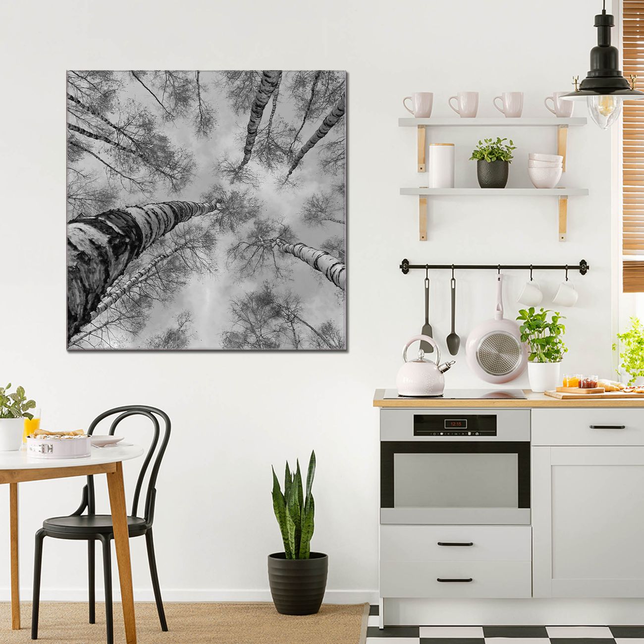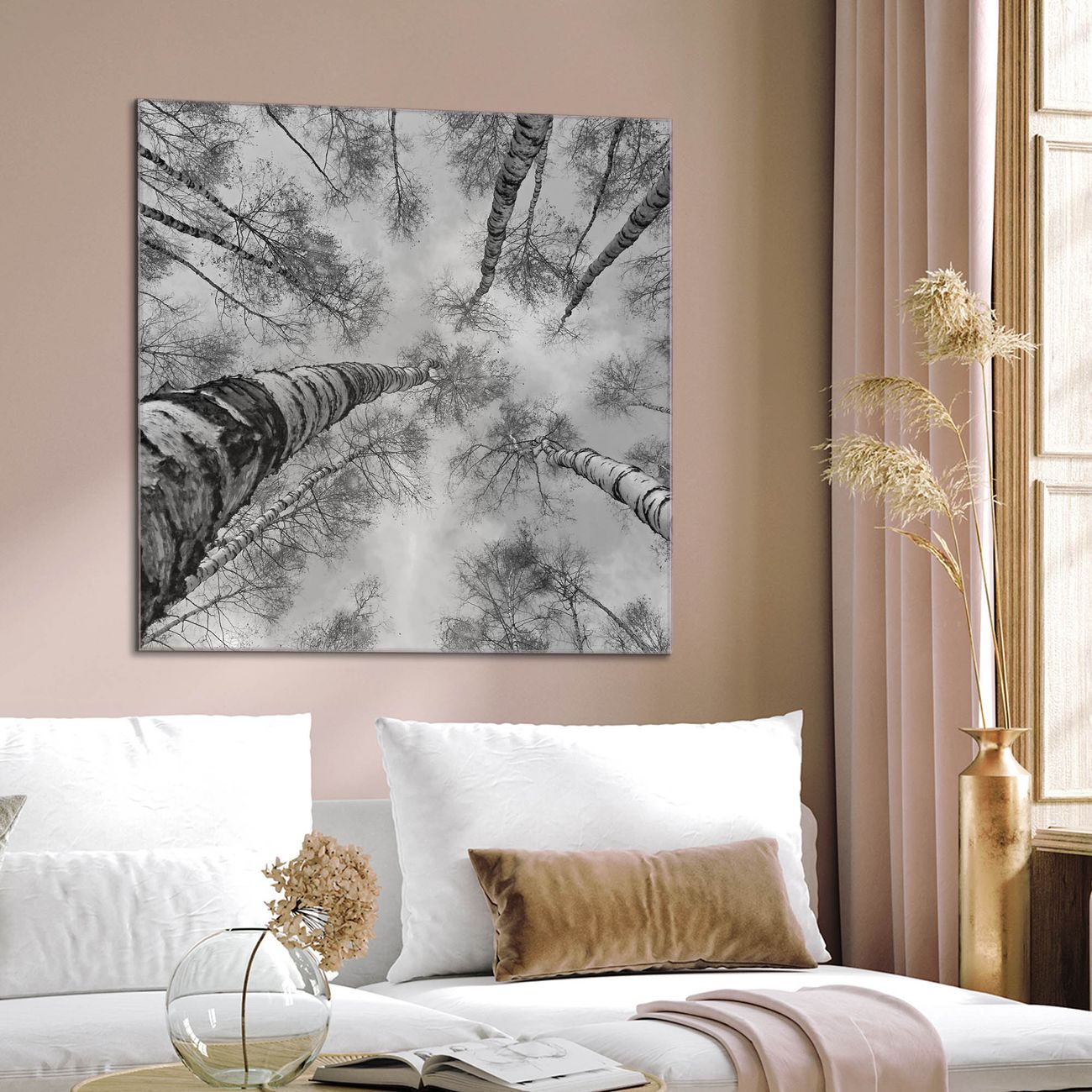 Quadratisches Wandbild aus Glas Birkenwald
