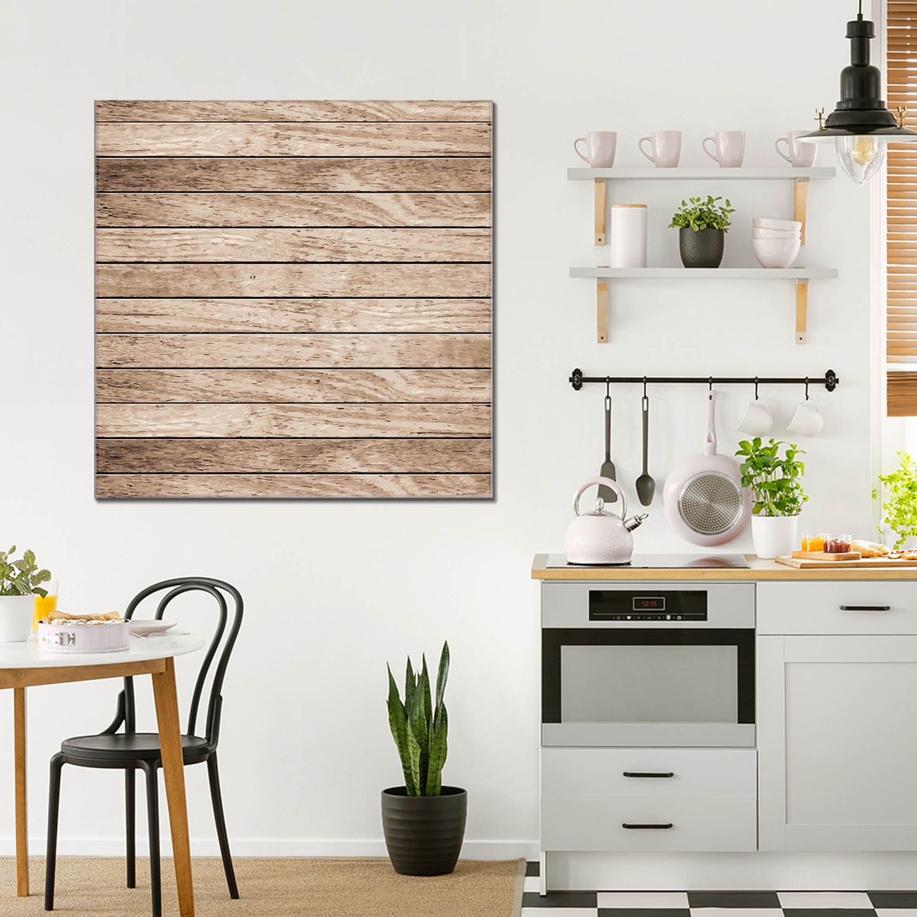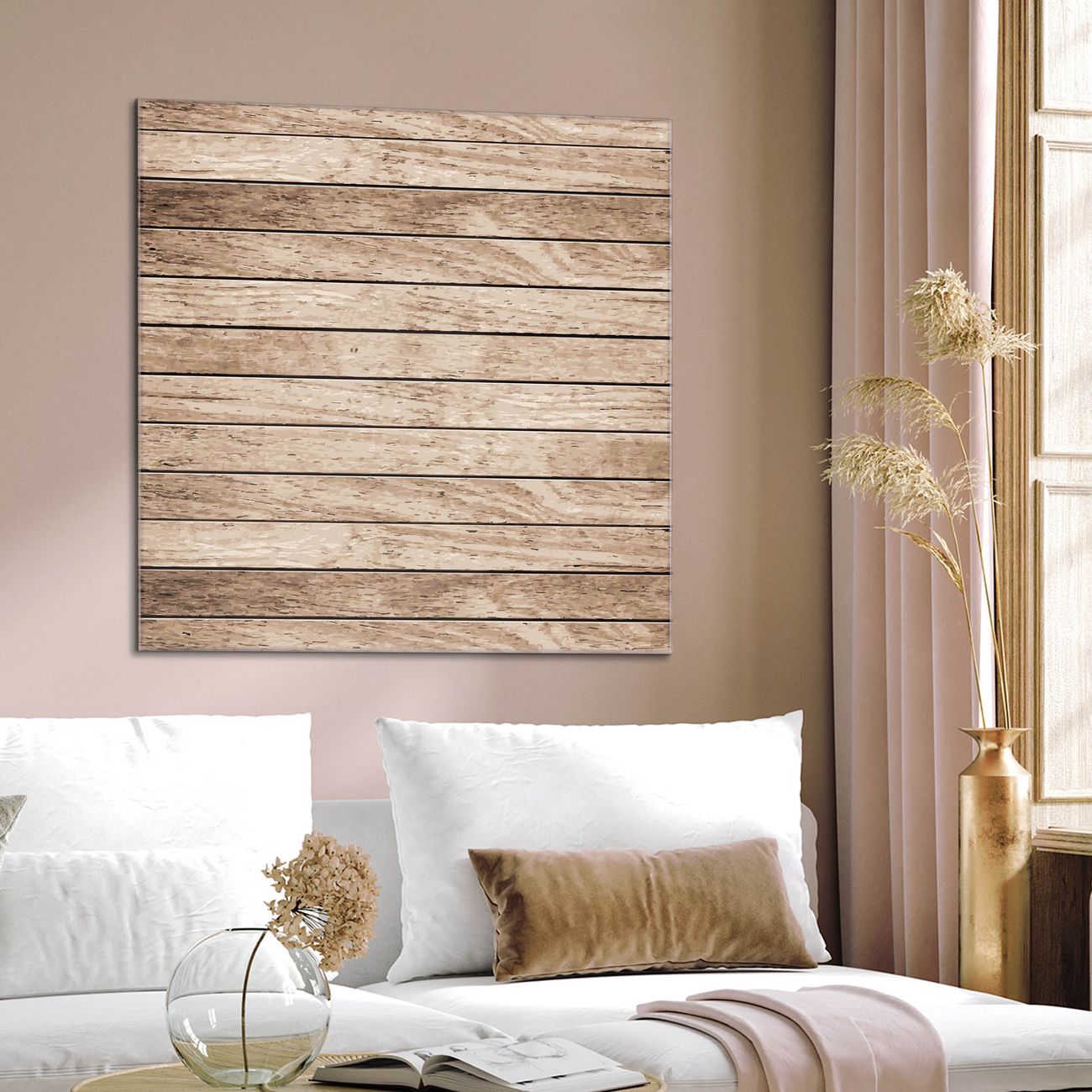 Quadratisches Wandbild aus Glas Blasse Holzlatten