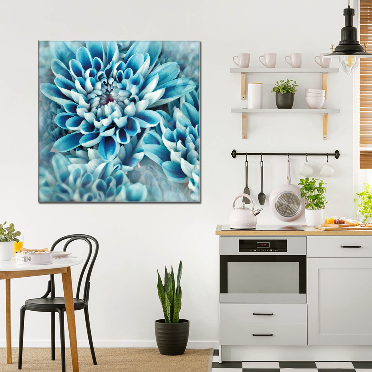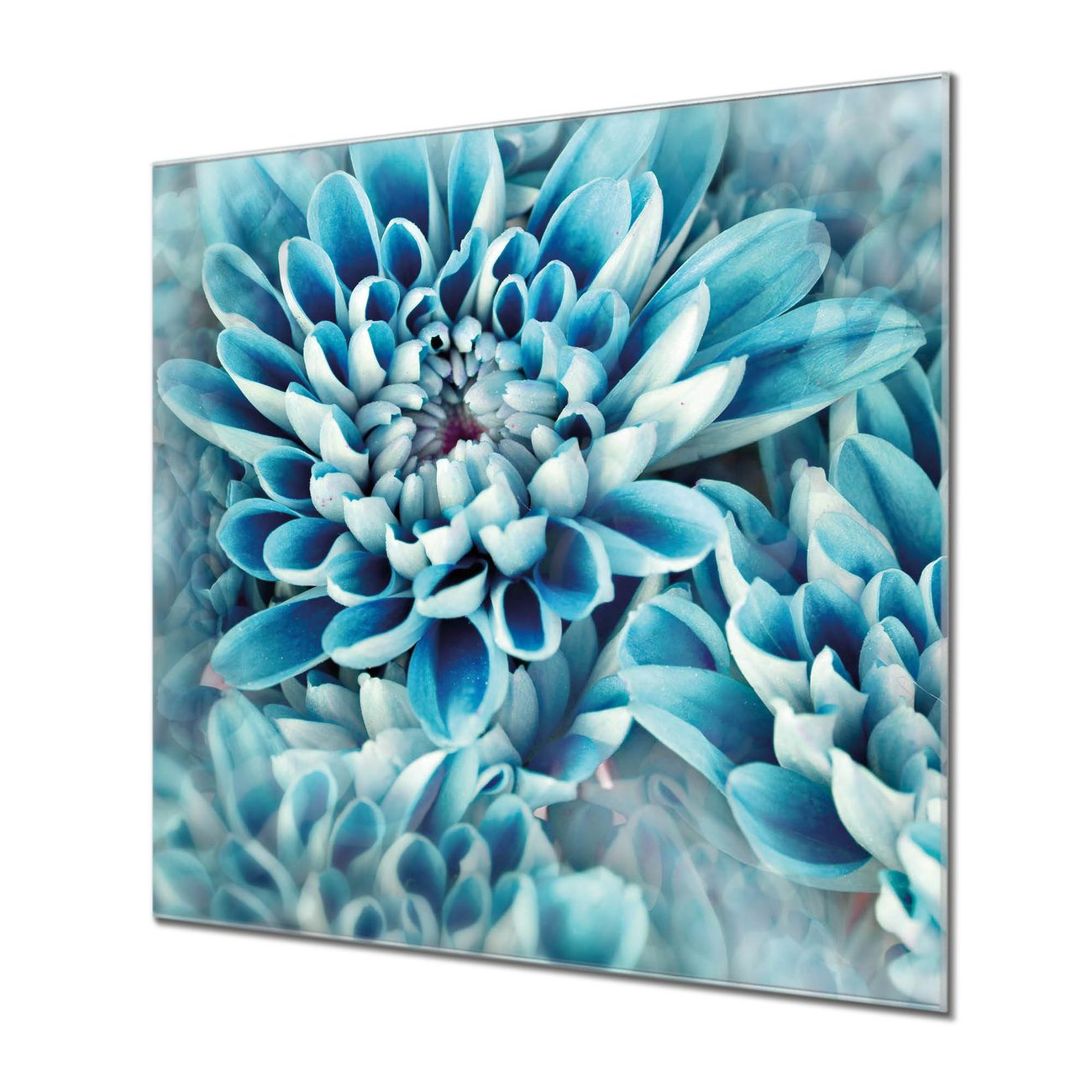 Quadratisches Wandbild aus Glas Blaue Blüten