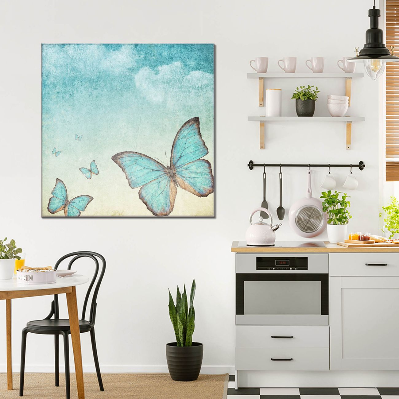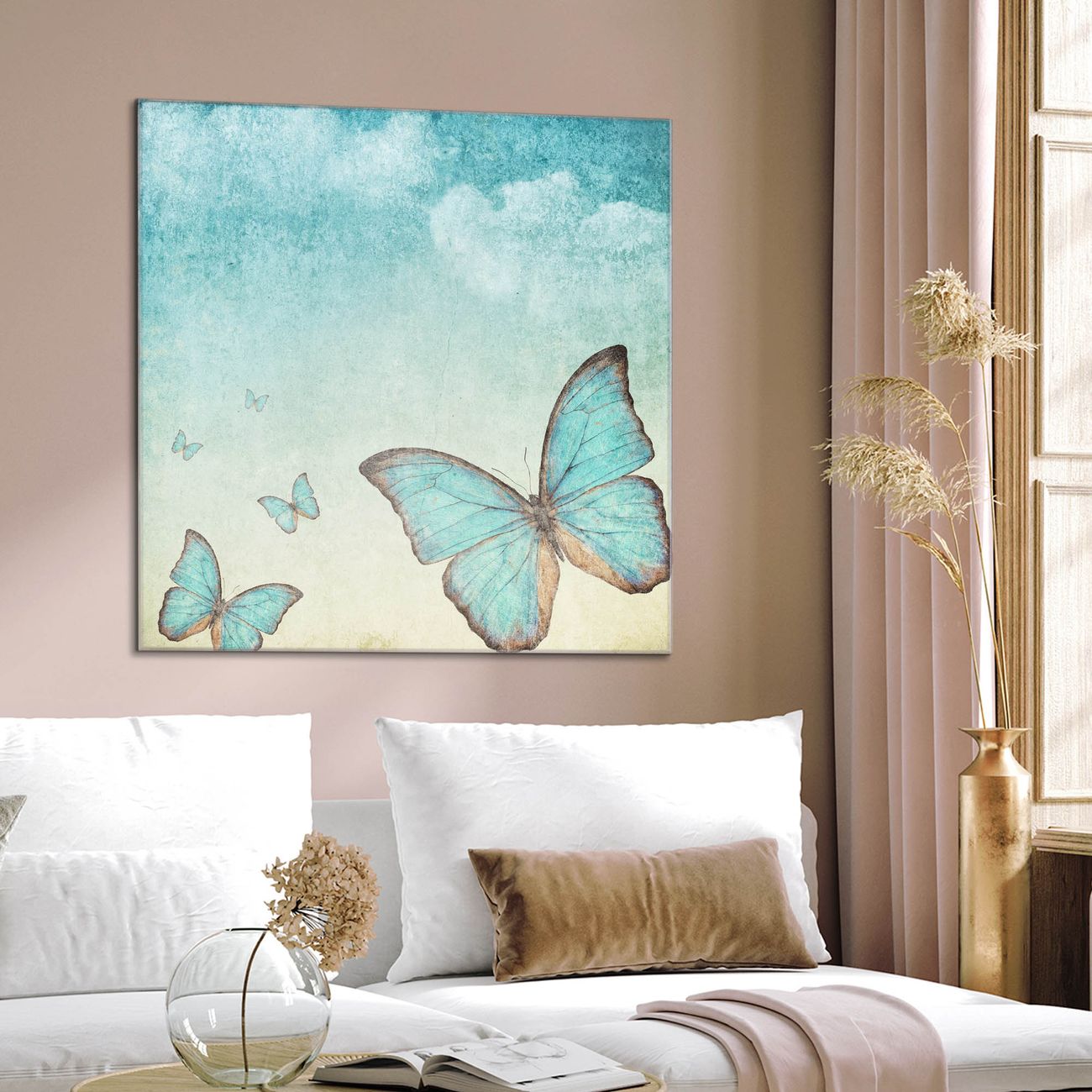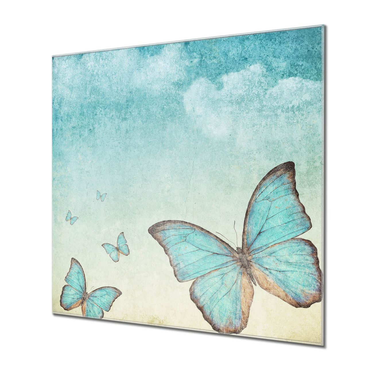 Quadratisches Wandbild aus Glas Blaue Schmetterlinge