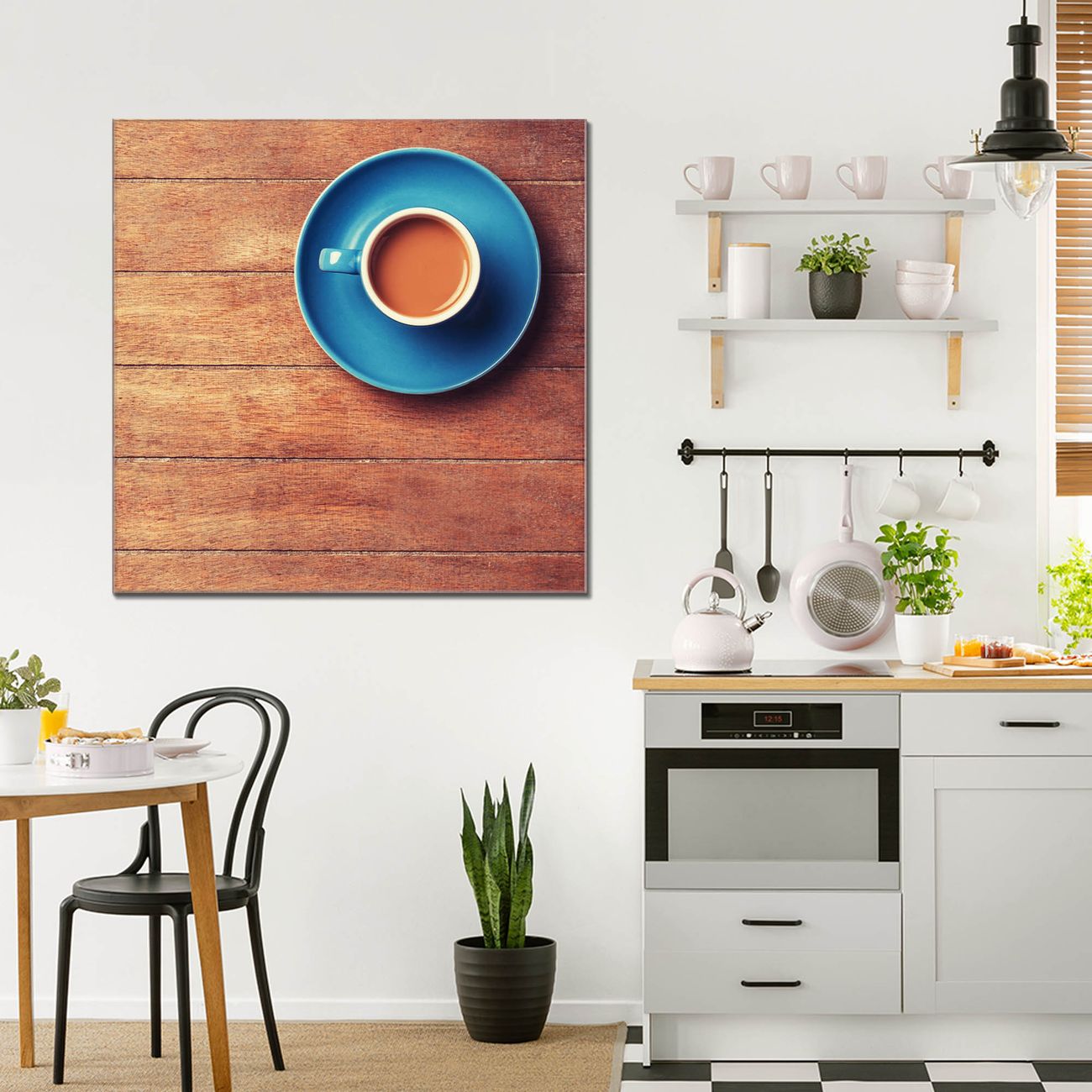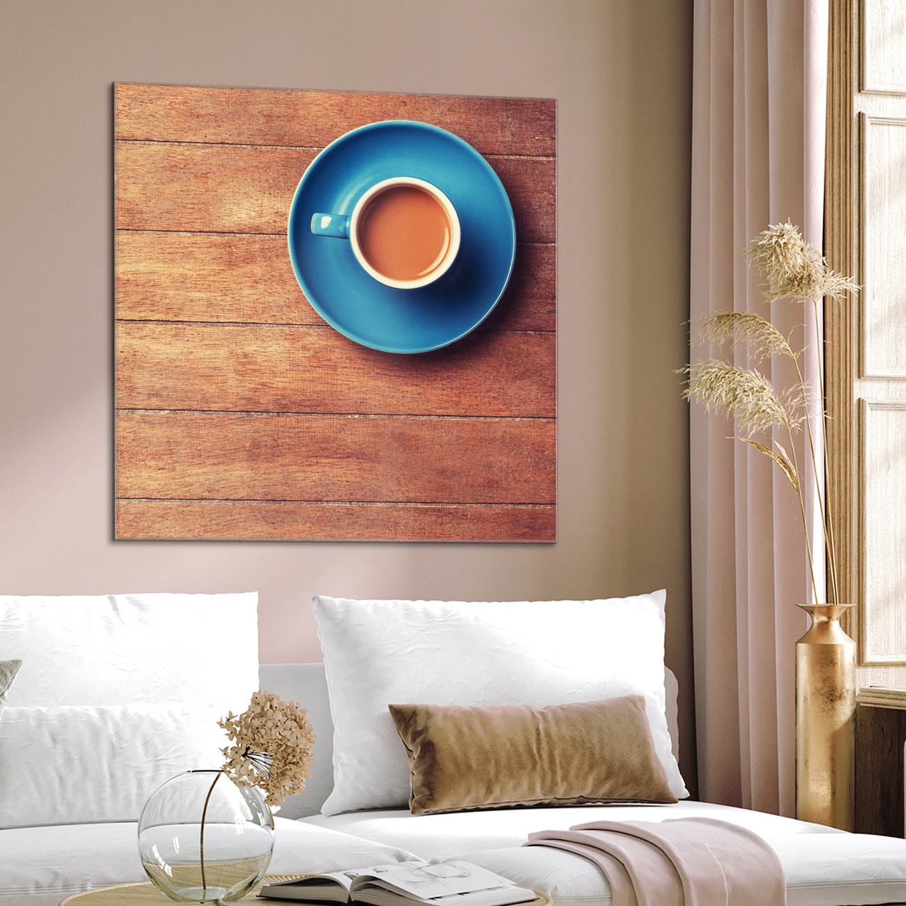 Quadratisches Wandbild aus Glas Blaue Tasse