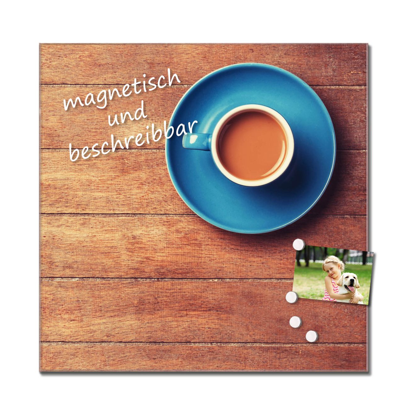 Das Glasbild besteht aus 4mm gehärtetem zertifiziertem ESG Sicherheitsglas, die Rückwand aus einem magnetischen Stahlblech. Durch die superflache Bauweise haben Sie die Wahl aus einer Vielzahl von Befestigungsmöglichkeiten. Sie können das Wandbild mit einem Montagekleber superflach an die Wand kleben oder Sie wählen eines unserer passenden Befestigungssets, welches eine optimale Montage garantiert. Durch die mitgelieferten 4 Neodym-Magnete ist Ihr Glaswandbild sofort einsatzbereit. Wir sind ein kleines Team aus dem Herzen von Sachsen und fertigen alle Artikel von Hand für Sie an. Wir entwerfen unsere Produkte selbst mit großer Liebe zum Detail.