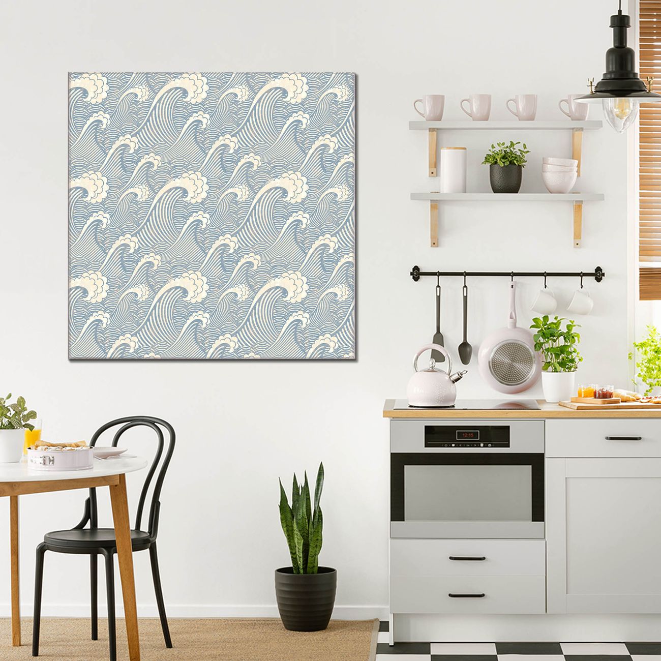 Quadratisches Wandbild aus Glas Blaue Wellen