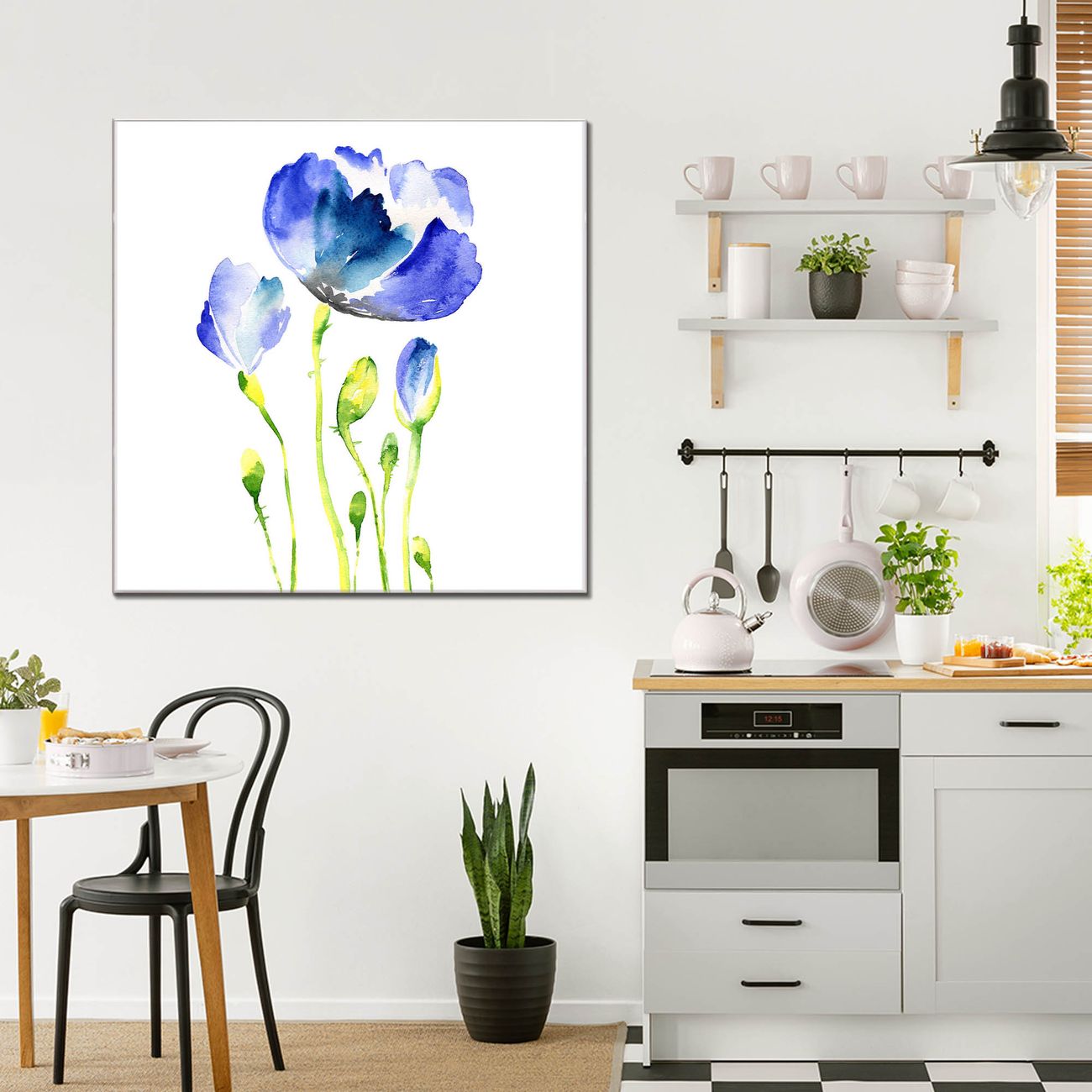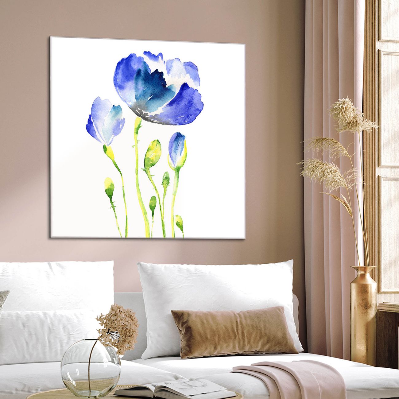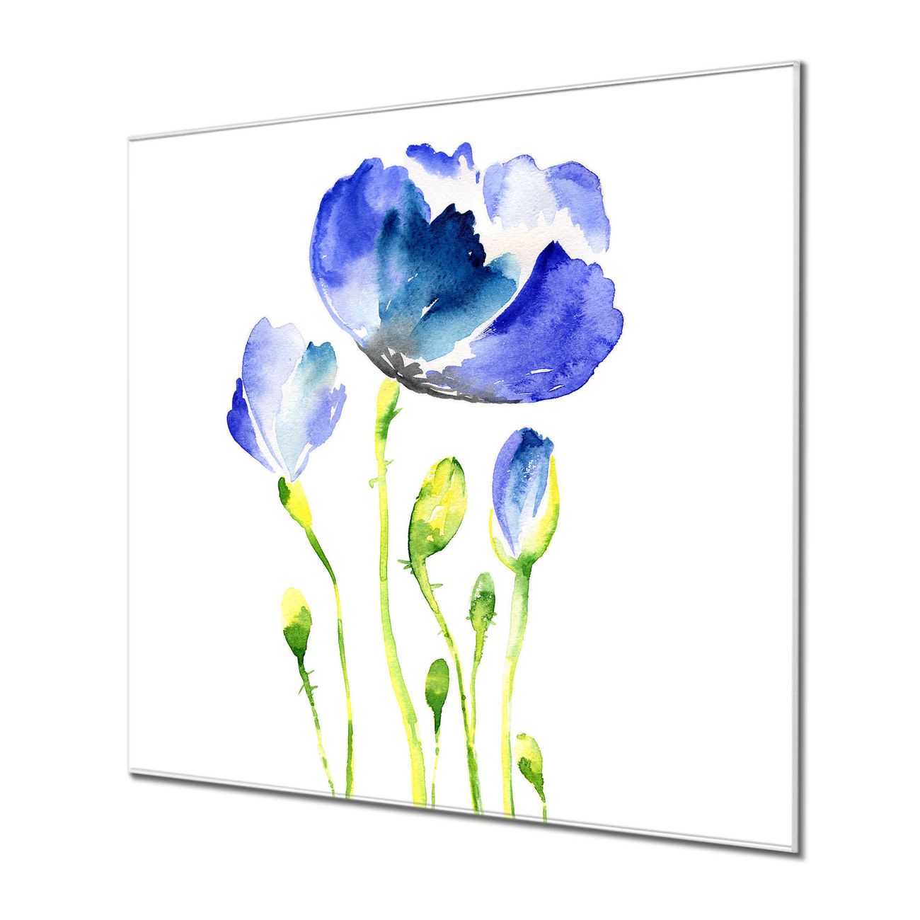 Quadratisches Wandbild aus Glas Blauer Mohn