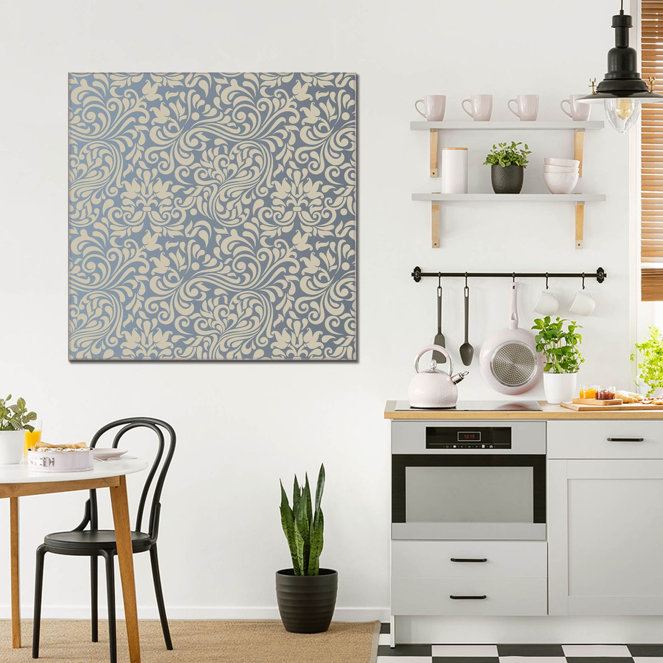 Quadratisches Wandbild aus Glas Blaues Ornament