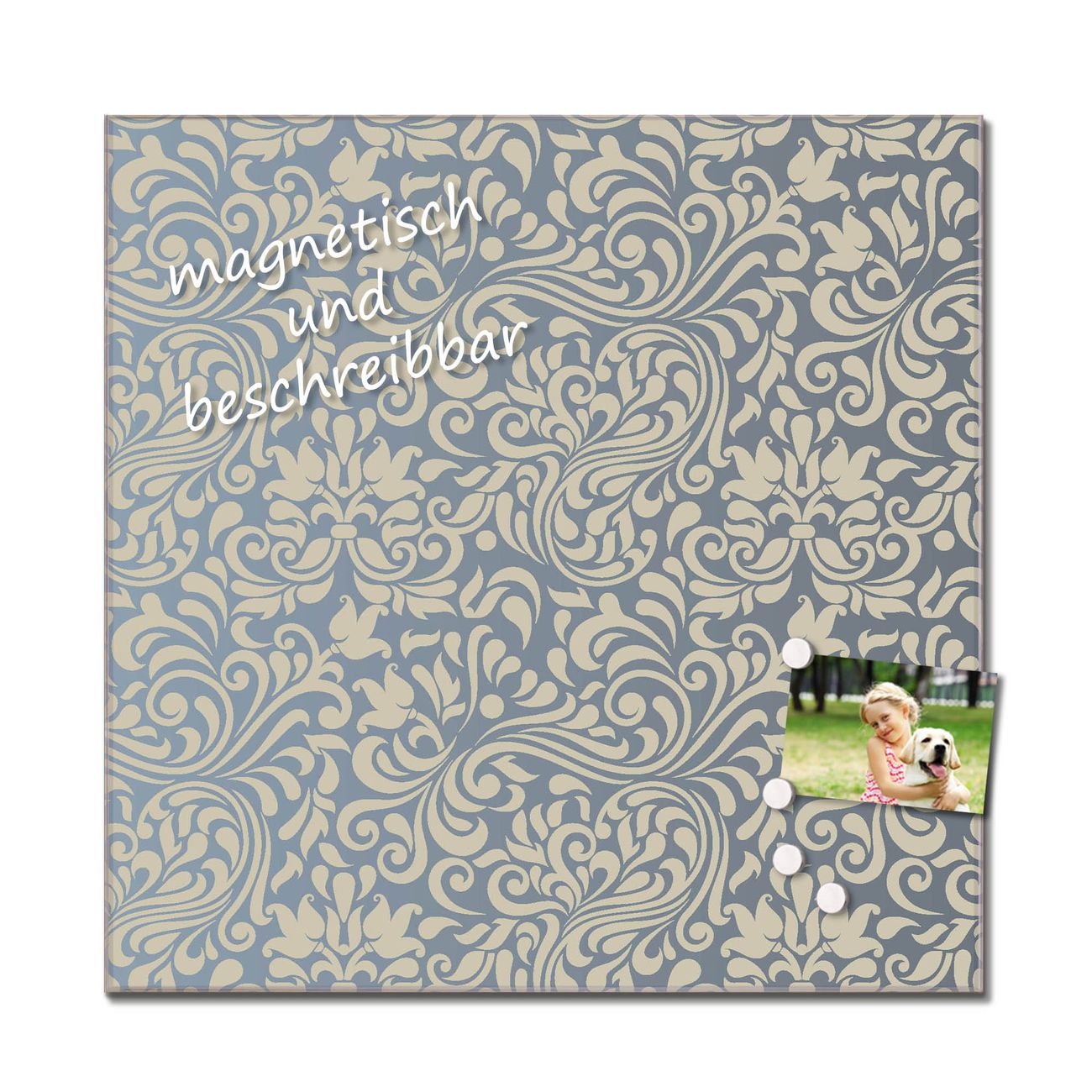 Das Glasbild besteht aus 4mm gehärtetem zertifiziertem ESG Sicherheitsglas, die Rückwand aus einem magnetischen Stahlblech. Durch die superflache Bauweise haben Sie die Wahl aus einer Vielzahl von Befestigungsmöglichkeiten. Sie können das Wandbild mit einem Montagekleber superflach an die Wand kleben oder Sie wählen eines unserer passenden Befestigungssets, welches eine optimale Montage garantiert. Durch die mitgelieferten 4 Neodym-Magnete ist Ihr Glaswandbild sofort einsatzbereit. Wir sind ein kleines Team aus dem Herzen von Sachsen und fertigen alle Artikel von Hand für Sie an. Wir entwerfen unsere Produkte selbst mit großer Liebe zum Detail.