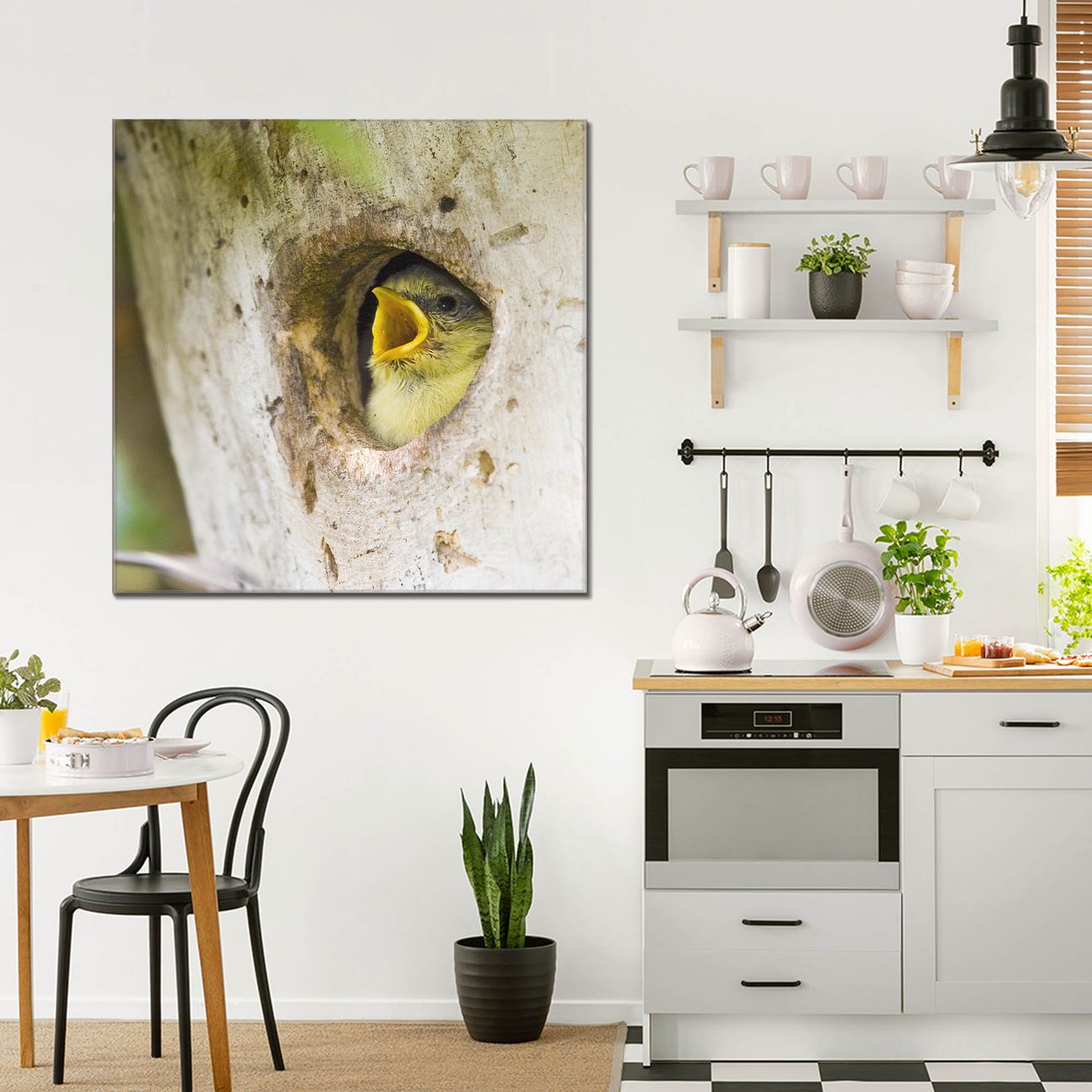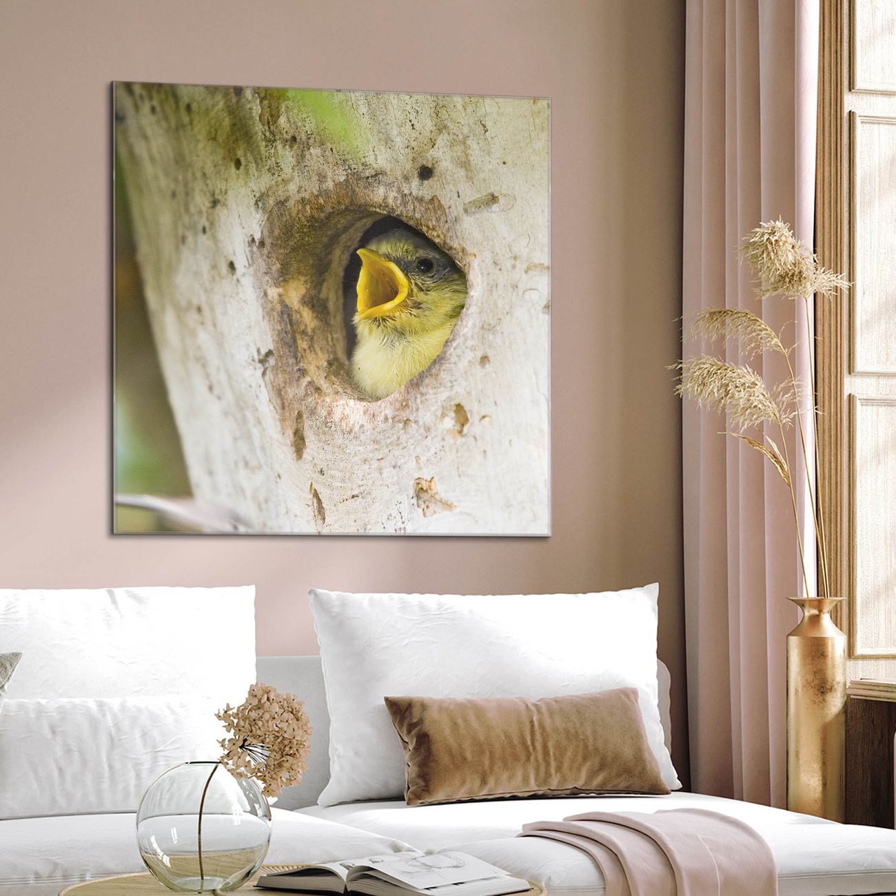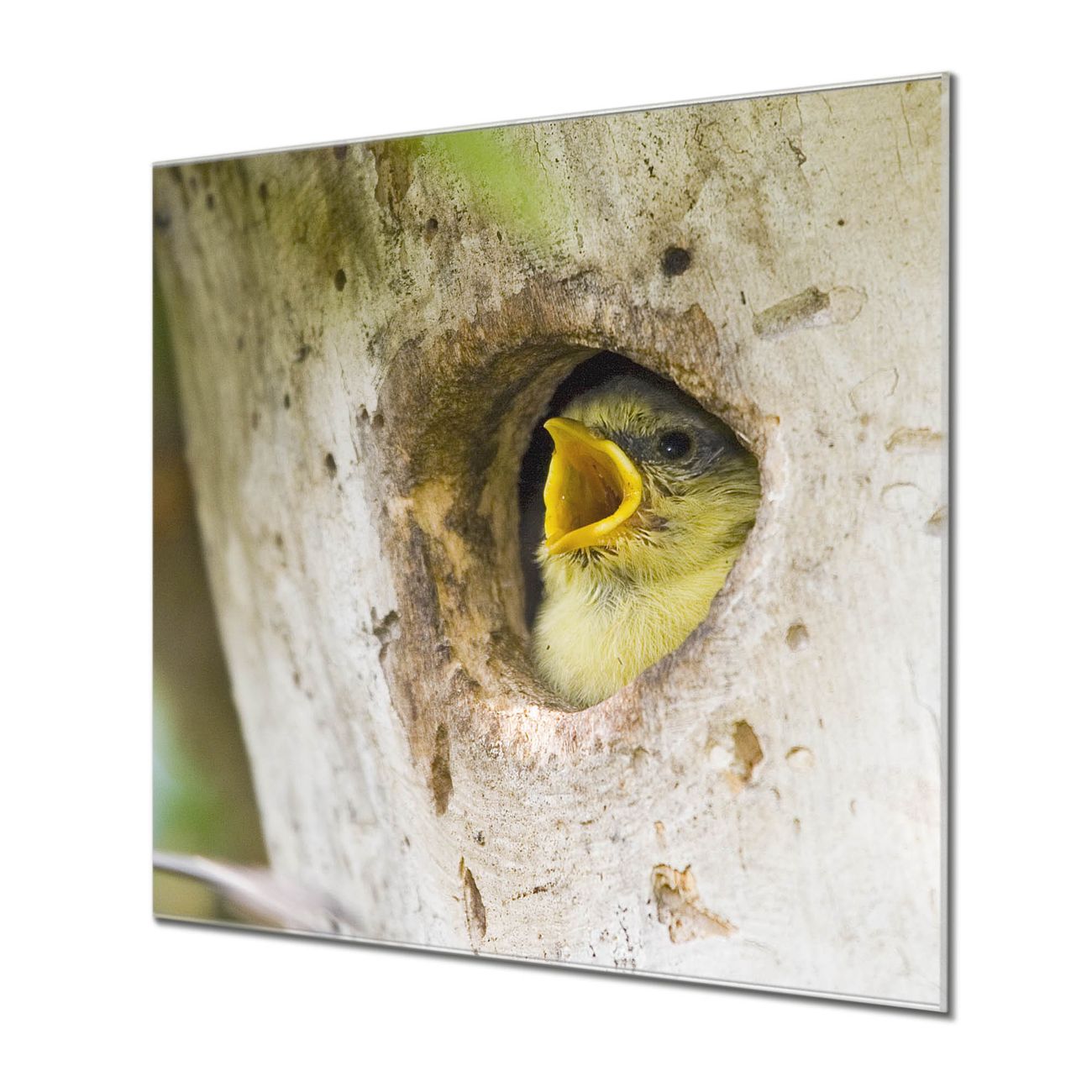 Quadratisches Wandbild aus Glas Blaumeise