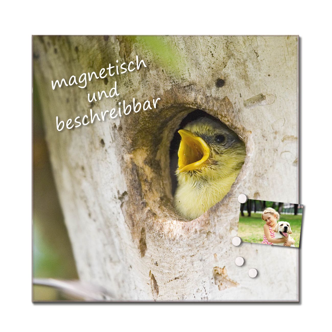 Das Glasbild besteht aus 4mm gehärtetem zertifiziertem ESG Sicherheitsglas, die Rückwand aus einem magnetischen Stahlblech. Durch die superflache Bauweise haben Sie die Wahl aus einer Vielzahl von Befestigungsmöglichkeiten. Sie können das Wandbild mit einem Montagekleber superflach an die Wand kleben oder Sie wählen eines unserer passenden Befestigungssets, welches eine optimale Montage garantiert. Durch die mitgelieferten 4 Neodym-Magnete ist Ihr Glaswandbild sofort einsatzbereit. Wir sind ein kleines Team aus dem Herzen von Sachsen und fertigen alle Artikel von Hand für Sie an. Wir entwerfen unsere Produkte selbst mit großer Liebe zum Detail.