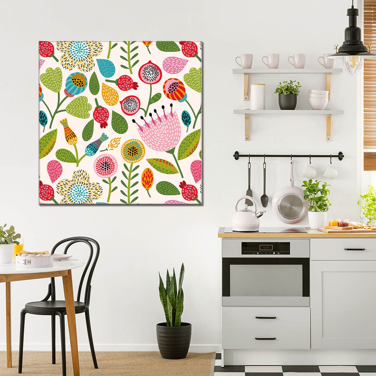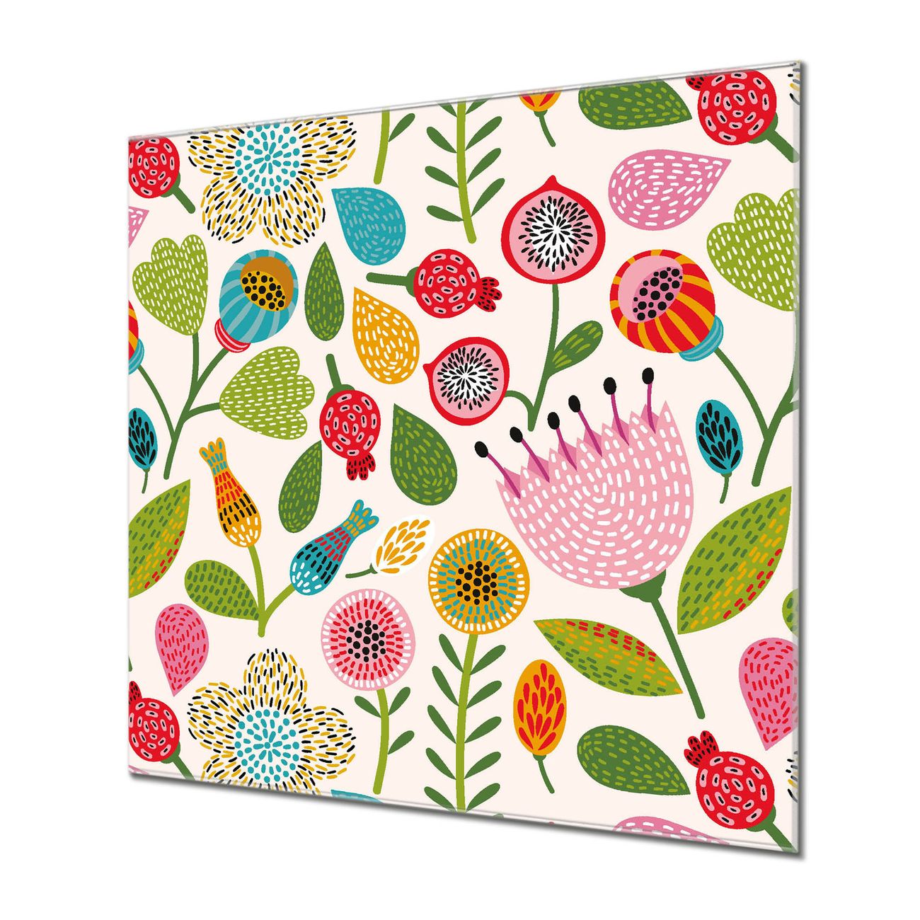 Quadratisches Wandbild aus Glas Blumen Naiv