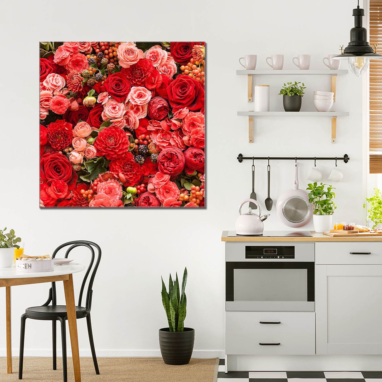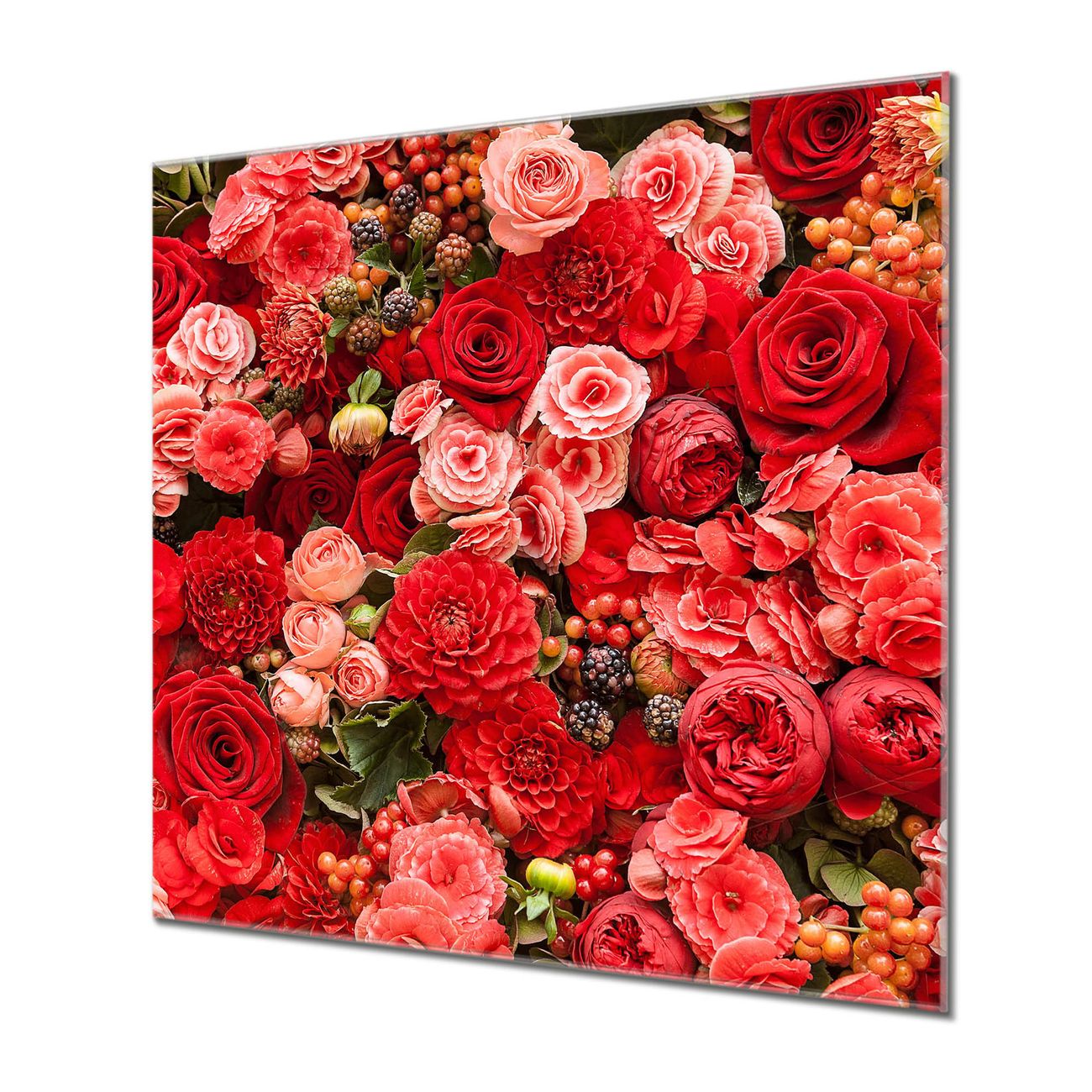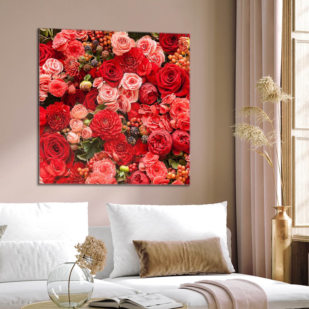 Quadratisches Wandbild aus Glas Bouquet in Rot