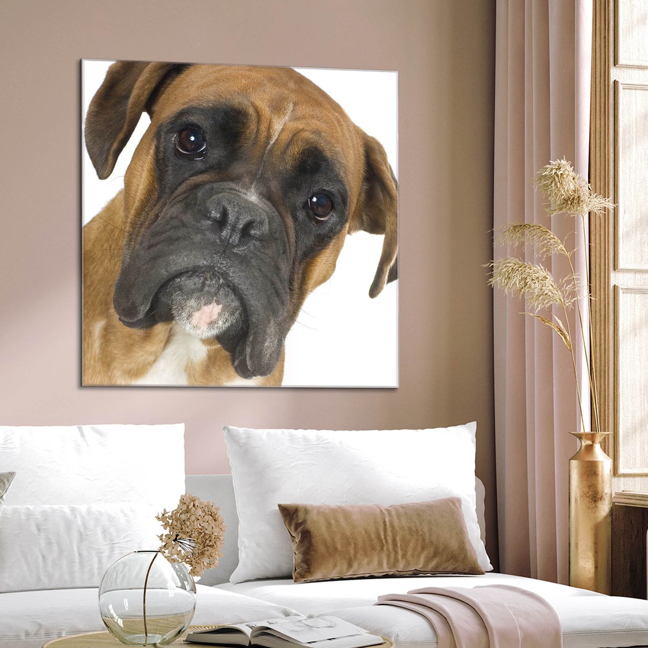 Unsere einzigartigen Glasbilder im Querformat von banjado mit Motiv Boxer sind der absolute Hingucker! Unsere Banjado Glasbilder sind sehr begehrt, weil sie top verarbeitet sind und sich ganz leicht montieren lassen. Schon mit wenigen Handgriffen hängen sie an der Wand und strahlen mit höchster brillianz. Durch die Ramenlose Herstellung schwebt das Echtglasbild förmlich an der Wand. Das Motiv erscheint besonders ausdrucksstark und hochwertig und ist hinter dem Echtglas geschützt.