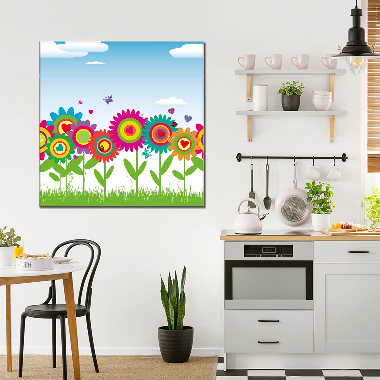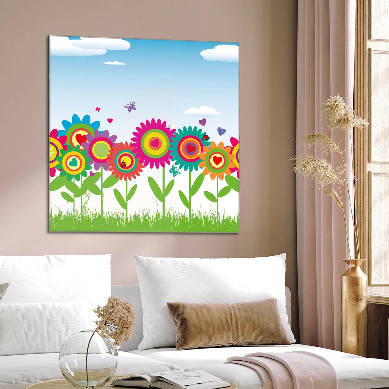 Quadratisches Wandbild aus Glas Bunte Blumen