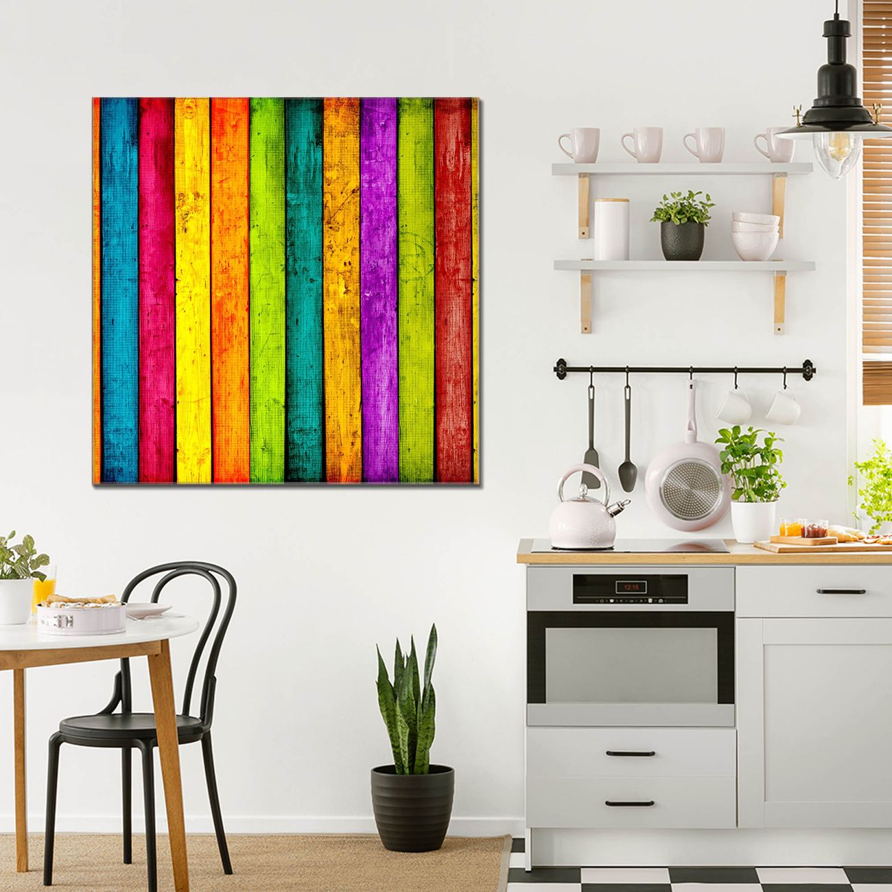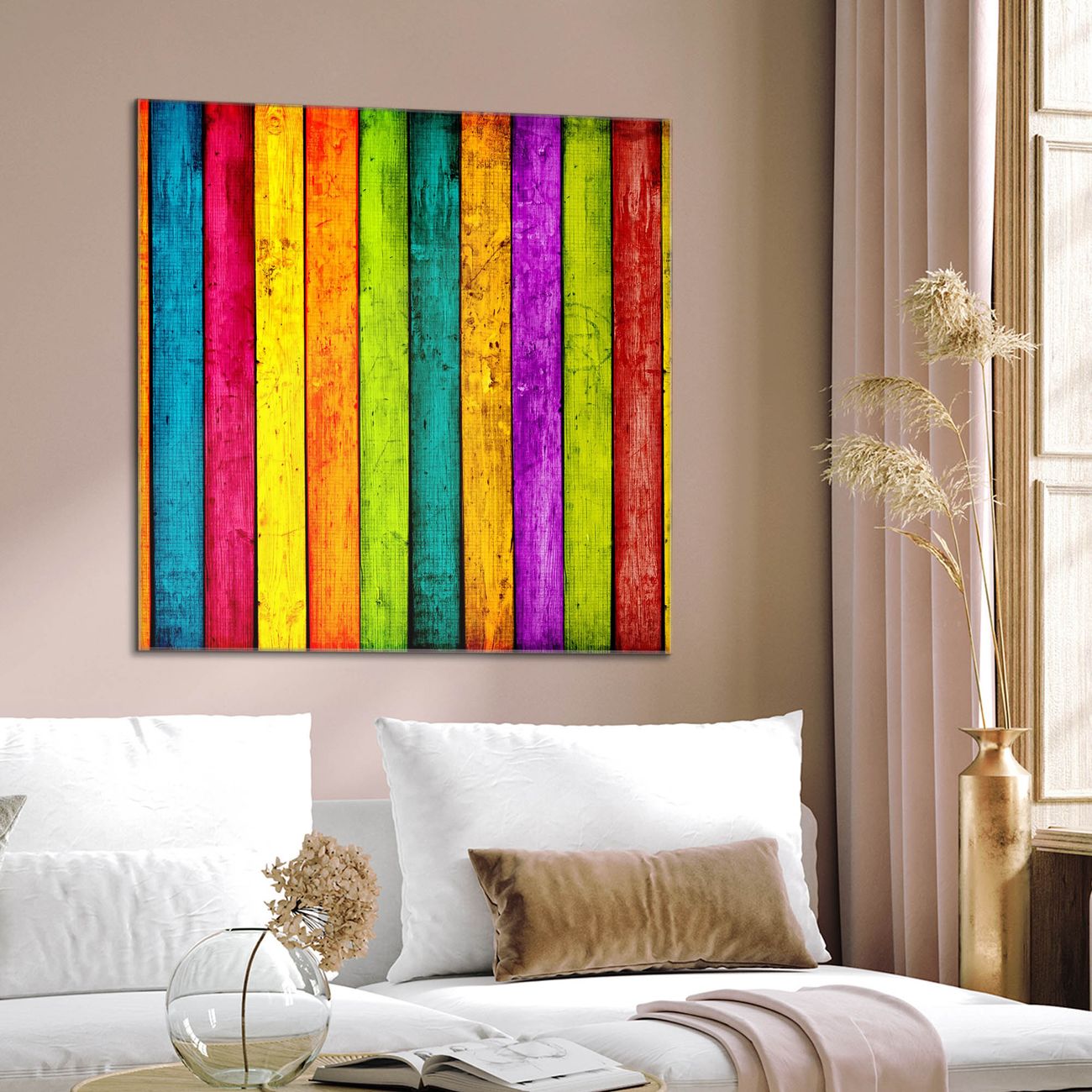 Quadratisches Wandbild aus Glas Bunte Holzlatten