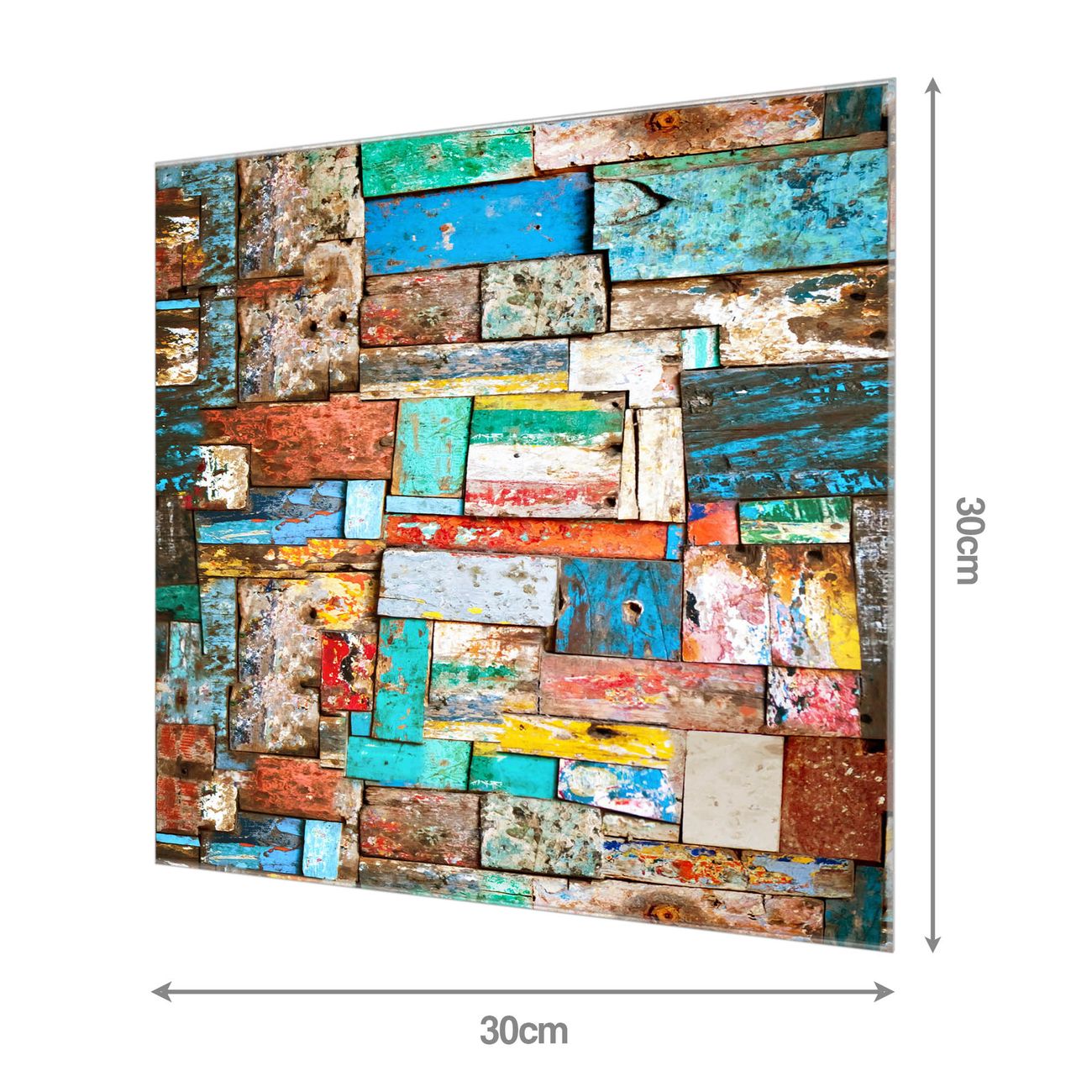 Quadratisches Wandbild aus Glas Bunte Holzschindeln