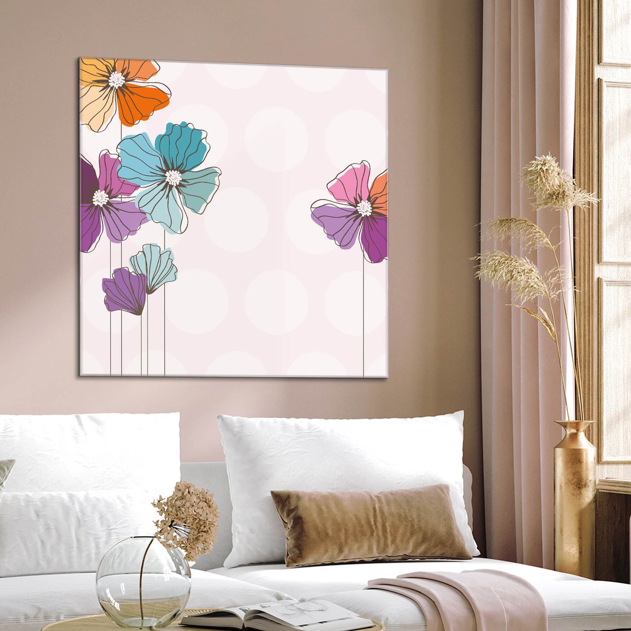 Quadratisches Wandbild aus Glas Bunter Mohn