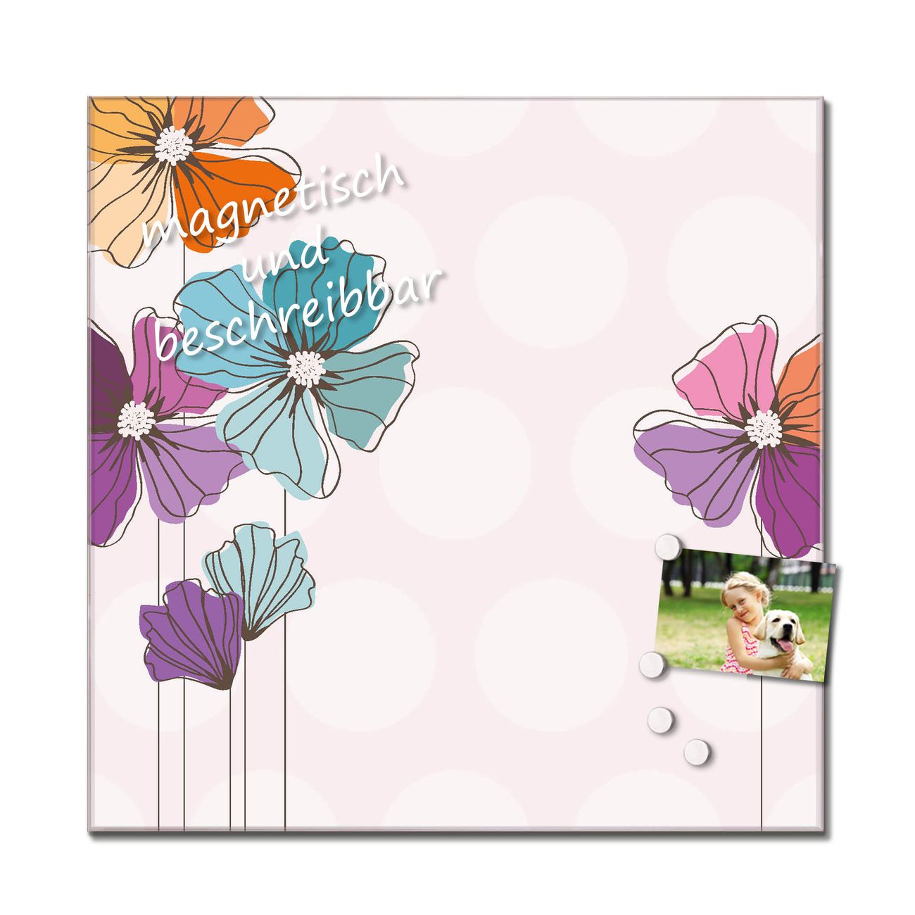 Das Glasbild besteht aus 4mm gehärtetem zertifiziertem ESG Sicherheitsglas, die Rückwand aus einem magnetischen Stahlblech. Durch die superflache Bauweise haben Sie die Wahl aus einer Vielzahl von Befestigungsmöglichkeiten. Sie können das Wandbild mit einem Montagekleber superflach an die Wand kleben oder Sie wählen eines unserer passenden Befestigungssets, welches eine optimale Montage garantiert. Durch die mitgelieferten 4 Neodym-Magnete ist Ihr Glaswandbild sofort einsatzbereit. Wir sind ein kleines Team aus dem Herzen von Sachsen und fertigen alle Artikel von Hand für Sie an. Wir entwerfen unsere Produkte selbst mit großer Liebe zum Detail.