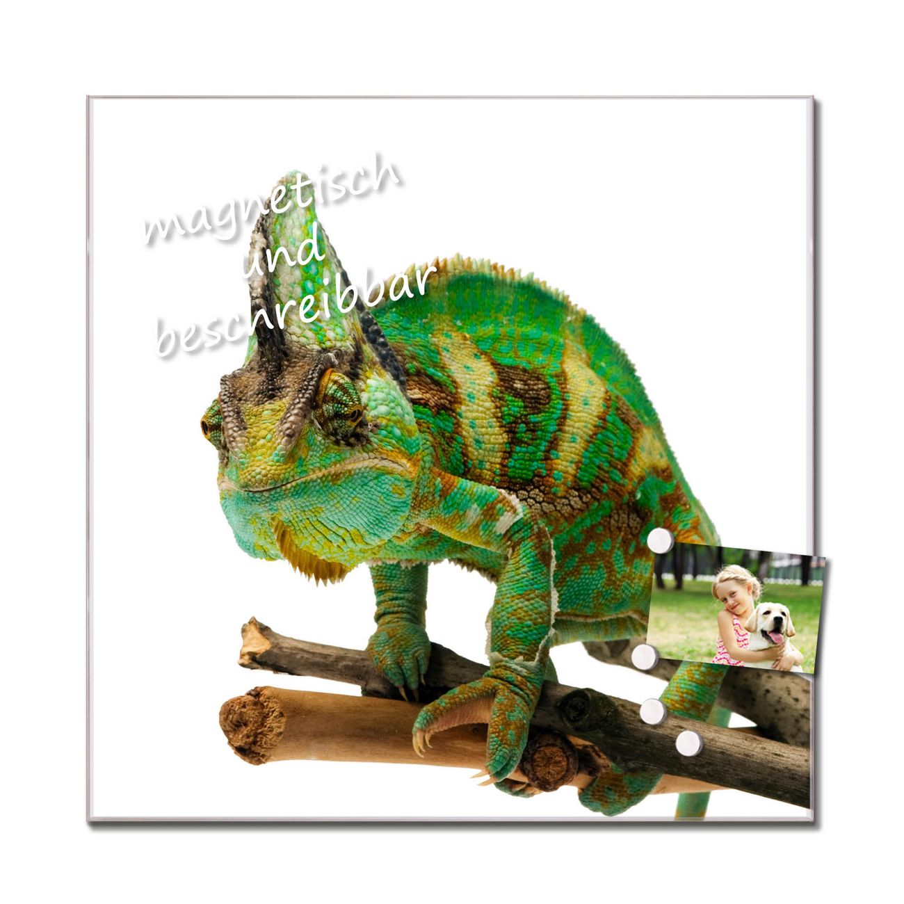 Unsere einzigartigen Glasbilder im Querformat von banjado mit Motiv Chamäleon sind der absolute Hingucker! Unsere Banjado Glasbilder sind sehr begehrt, weil sie top verarbeitet sind und sich ganz leicht montieren lassen. Schon mit wenigen Handgriffen hängen sie an der Wand und strahlen mit höchster brillianz. Durch die Ramenlose Herstellung schwebt das Echtglasbild förmlich an der Wand. Das Motiv erscheint besonders ausdrucksstark und hochwertig und ist hinter dem Echtglas geschützt.