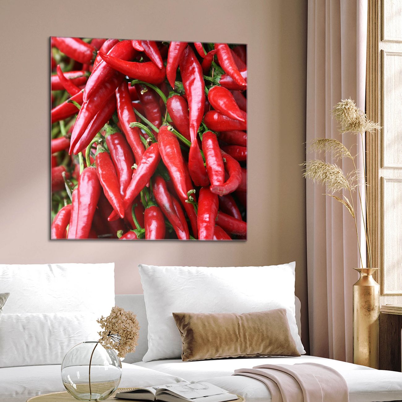 Quadratisches Wandbild aus Glas Chilli