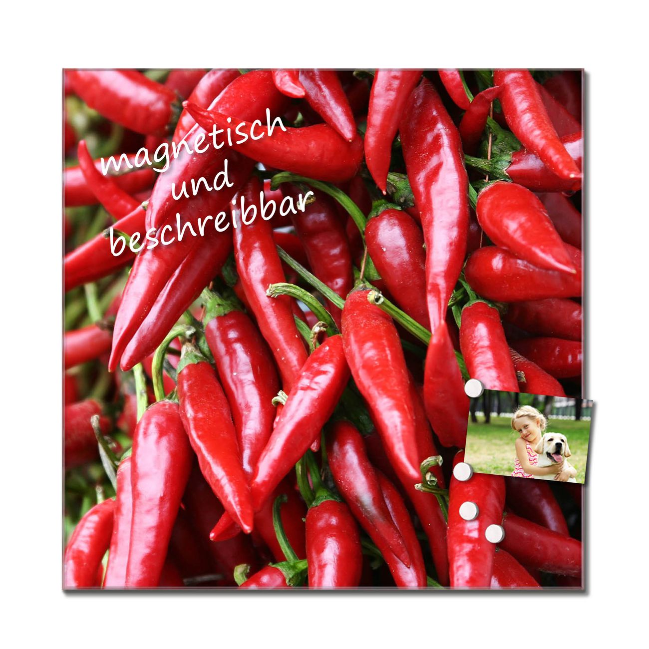Unsere einzigartigen Glasbilder im Querformat von banjado mit Motiv Chilli sind der absolute Hingucker! Unsere Banjado Glasbilder sind sehr begehrt, weil sie top verarbeitet sind und sich ganz leicht montieren lassen. Schon mit wenigen Handgriffen hängen sie an der Wand und strahlen mit höchster brillianz. Durch die Ramenlose Herstellung schwebt das Echtglasbild förmlich an der Wand. Das Motiv erscheint besonders ausdrucksstark und hochwertig und ist hinter dem Echtglas geschützt.