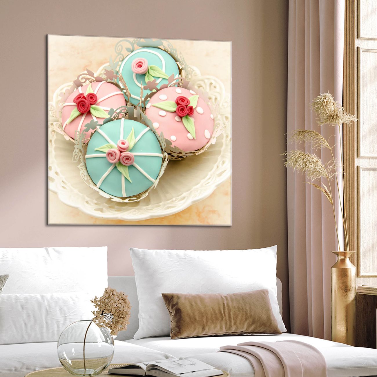 Unsere einzigartigen Glasbilder im Querformat von banjado mit Motiv Cupcakes sind der absolute Hingucker! Unsere Banjado Glasbilder sind sehr begehrt, weil sie top verarbeitet sind und sich ganz leicht montieren lassen. Schon mit wenigen Handgriffen hängen sie an der Wand und strahlen mit höchster brillianz. Durch die Ramenlose Herstellung schwebt das Echtglasbild förmlich an der Wand. Das Motiv erscheint besonders ausdrucksstark und hochwertig und ist hinter dem Echtglas geschützt.