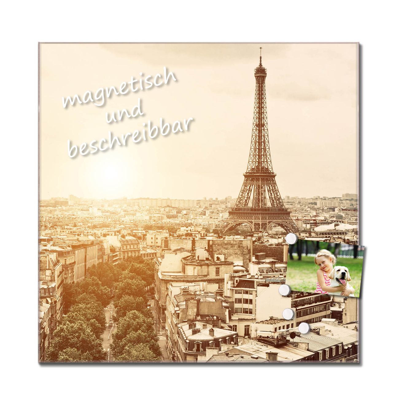 Das Glasbild besteht aus 4mm gehärtetem zertifiziertem ESG Sicherheitsglas, die Rückwand aus einem magnetischen Stahlblech. Durch die superflache Bauweise haben Sie die Wahl aus einer Vielzahl von Befestigungsmöglichkeiten. Sie können das Wandbild mit einem Montagekleber superflach an die Wand kleben oder Sie wählen eines unserer passenden Befestigungssets, welches eine optimale Montage garantiert. Durch die mitgelieferten 4 Neodym-Magnete ist Ihr Glaswandbild sofort einsatzbereit. Wir sind ein kleines Team aus dem Herzen von Sachsen und fertigen alle Artikel von Hand für Sie an. Wir entwerfen unsere Produkte selbst mit großer Liebe zum Detail.