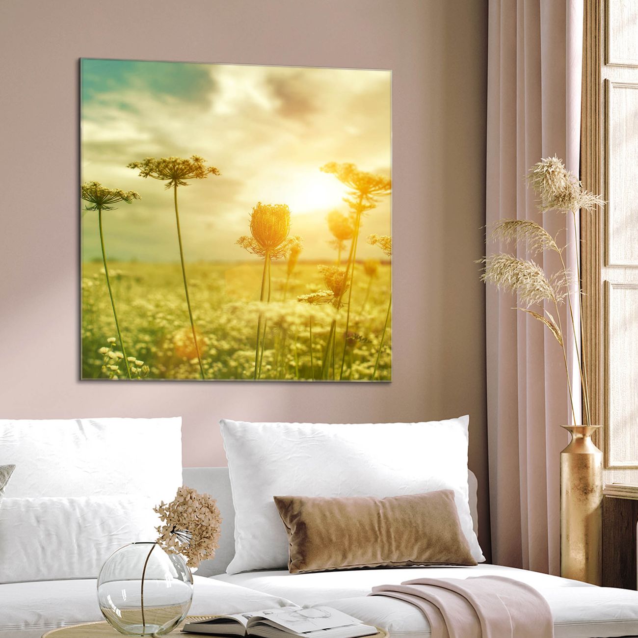 Quadratisches Wandbild aus Glas Dill im Sonnenlicht