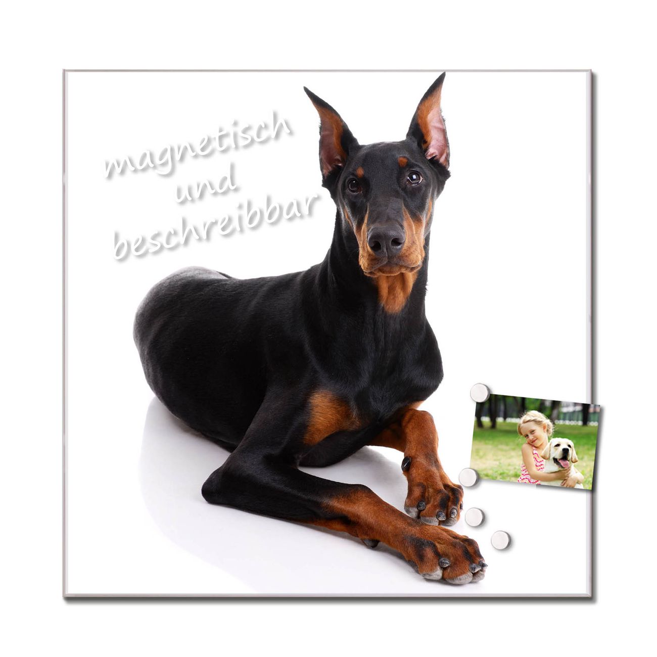 Quadratisches Wandbild aus Glas Dobermann
