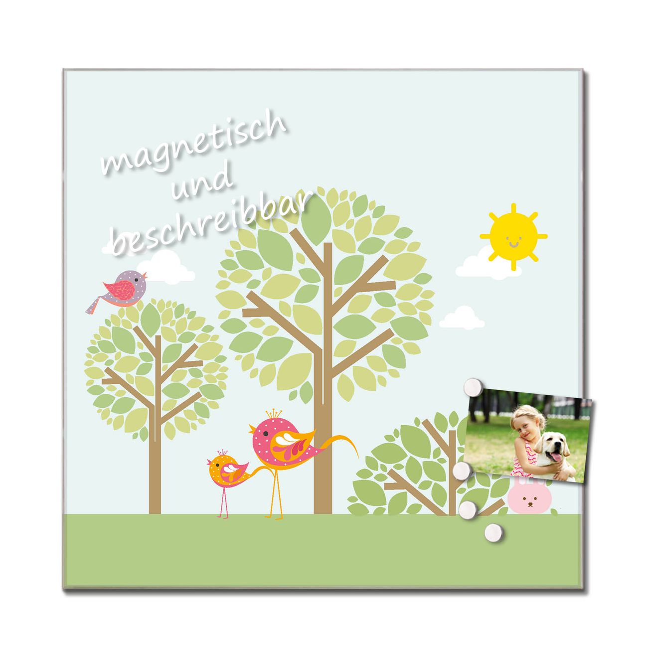 Das Glasbild besteht aus 4mm gehärtetem zertifiziertem ESG Sicherheitsglas, die Rückwand aus einem magnetischen Stahlblech. Durch die superflache Bauweise haben Sie die Wahl aus einer Vielzahl von Befestigungsmöglichkeiten. Sie können das Wandbild mit einem Montagekleber superflach an die Wand kleben oder Sie wählen eines unserer passenden Befestigungssets, welches eine optimale Montage garantiert. Durch die mitgelieferten 4 Neodym-Magnete ist Ihr Glaswandbild sofort einsatzbereit. Wir sind ein kleines Team aus dem Herzen von Sachsen und fertigen alle Artikel von Hand für Sie an. Wir entwerfen unsere Produkte selbst mit großer Liebe zum Detail.