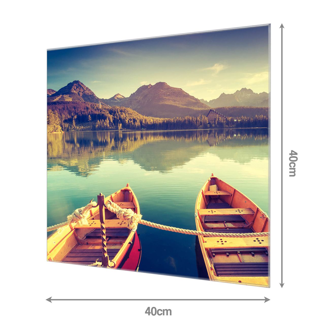 Quadratisches Wandbild aus Glas Drei Boote Am Steg