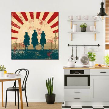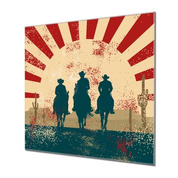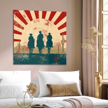Quadratisches Wandbild aus Glas Drei Cowboys