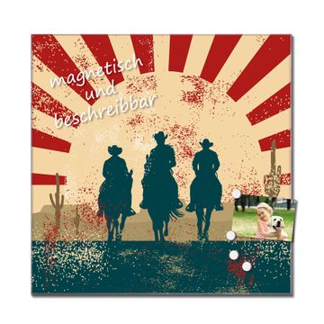 Unsere einzigartigen Glasbilder im Querformat von banjado mit Motiv Drei Cowboys sind der absolute Hingucker! Unsere Banjado Glasbilder sind sehr begehrt, weil sie top verarbeitet sind und sich ganz leicht montieren lassen. Schon mit wenigen Handgriffen hängen sie an der Wand und strahlen mit höchster brillianz. Durch die Ramenlose Herstellung schwebt das Echtglasbild förmlich an der Wand. Das Motiv erscheint besonders ausdrucksstark und hochwertig und ist hinter dem Echtglas geschützt.