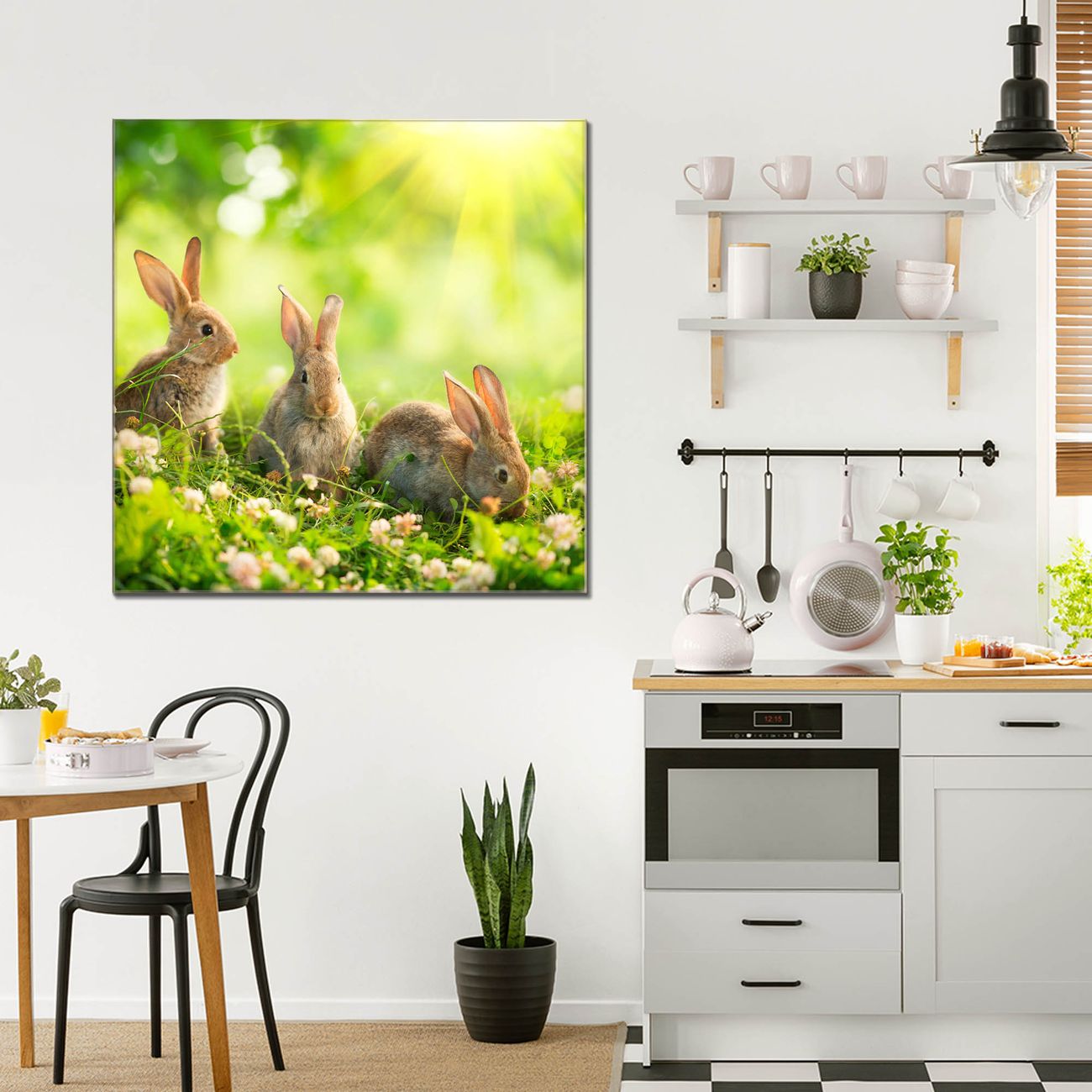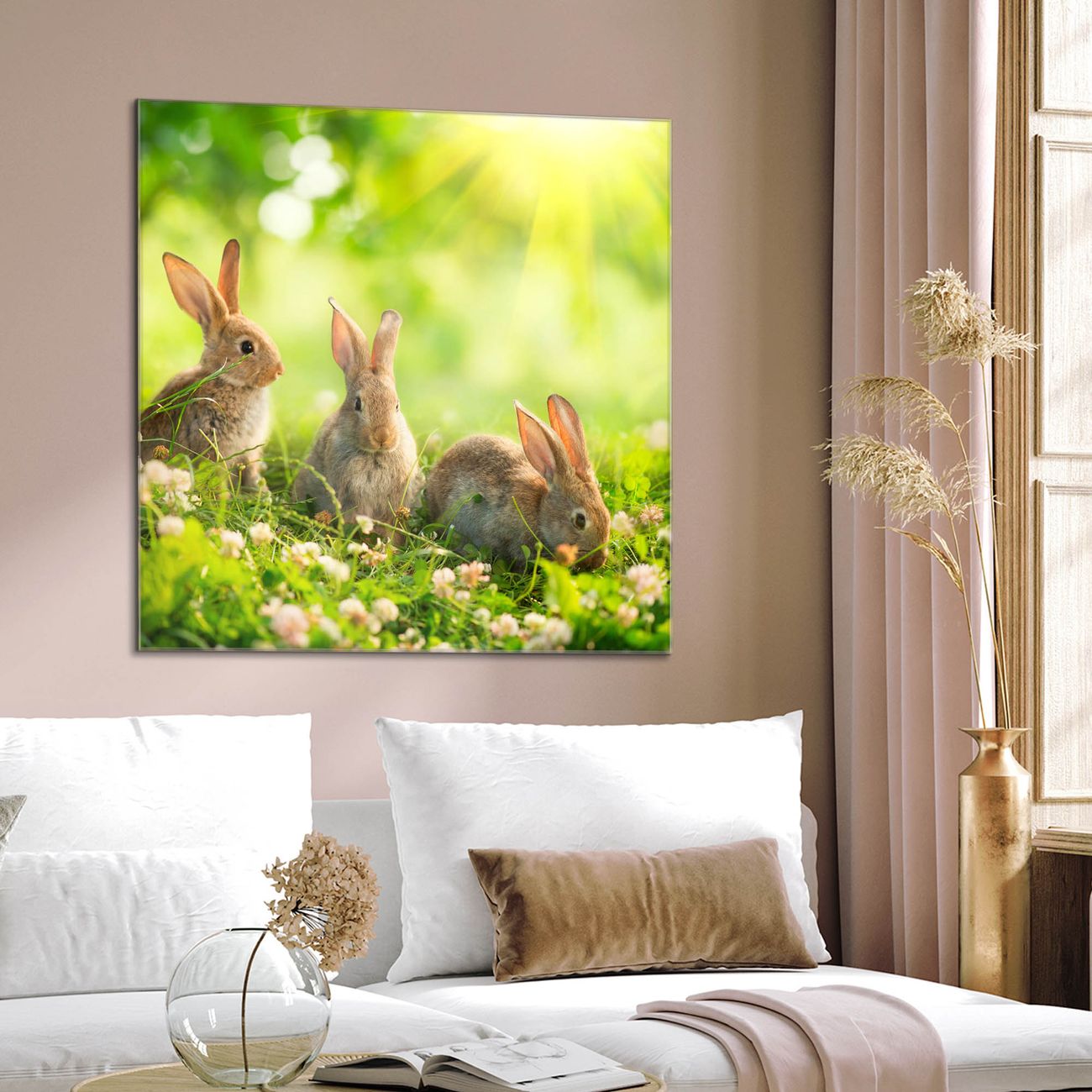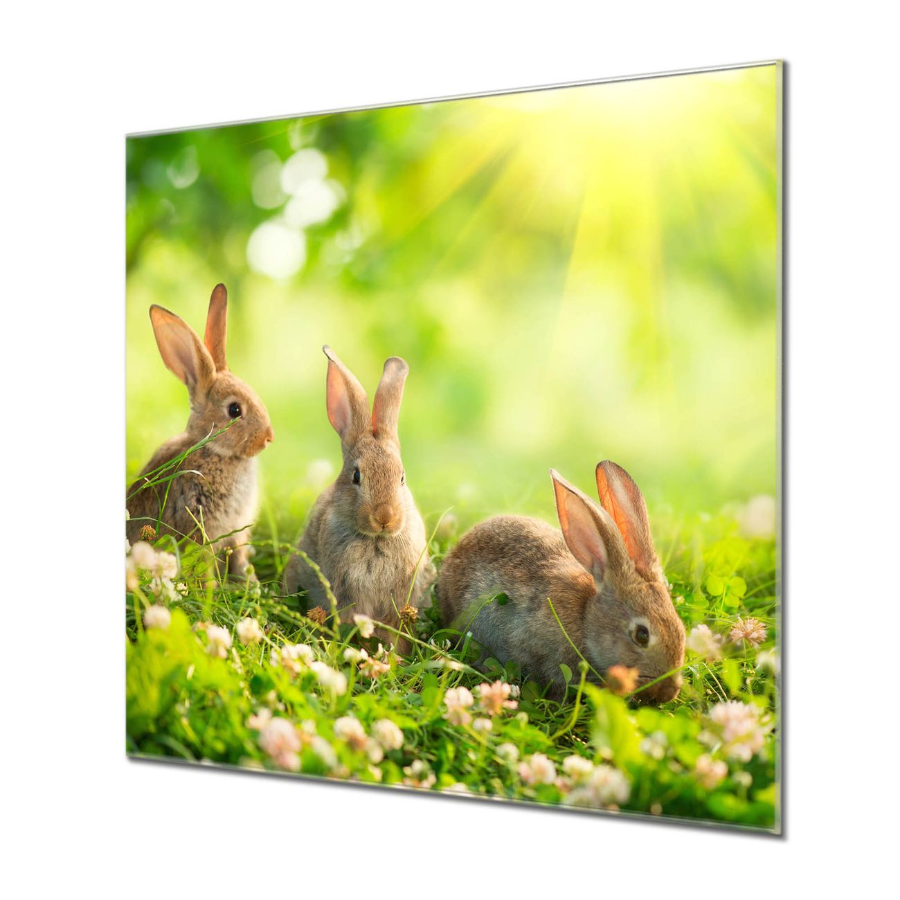Quadratisches Wandbild aus Glas Drei Hasen