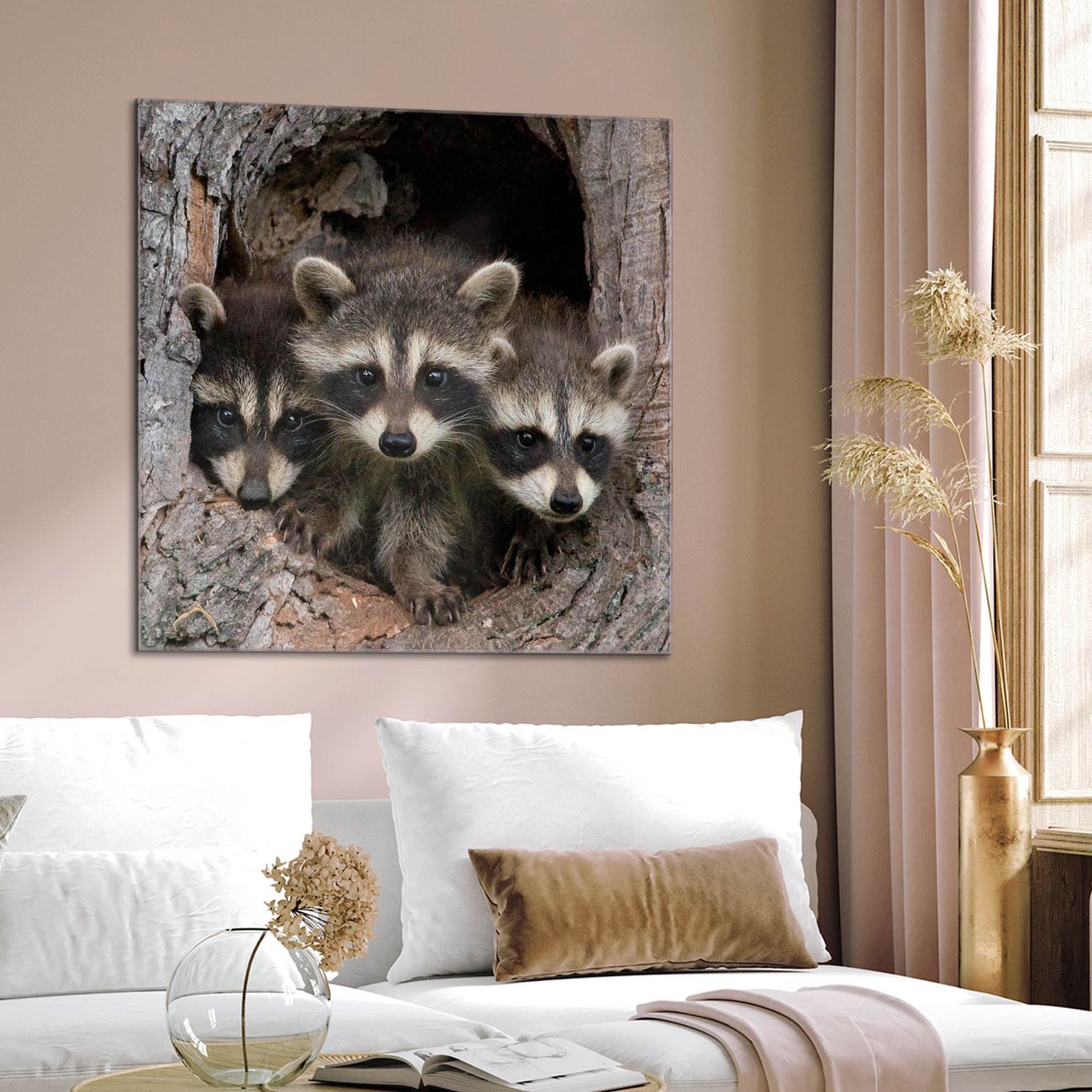Quadratisches Wandbild aus Glas Drei Waschbären