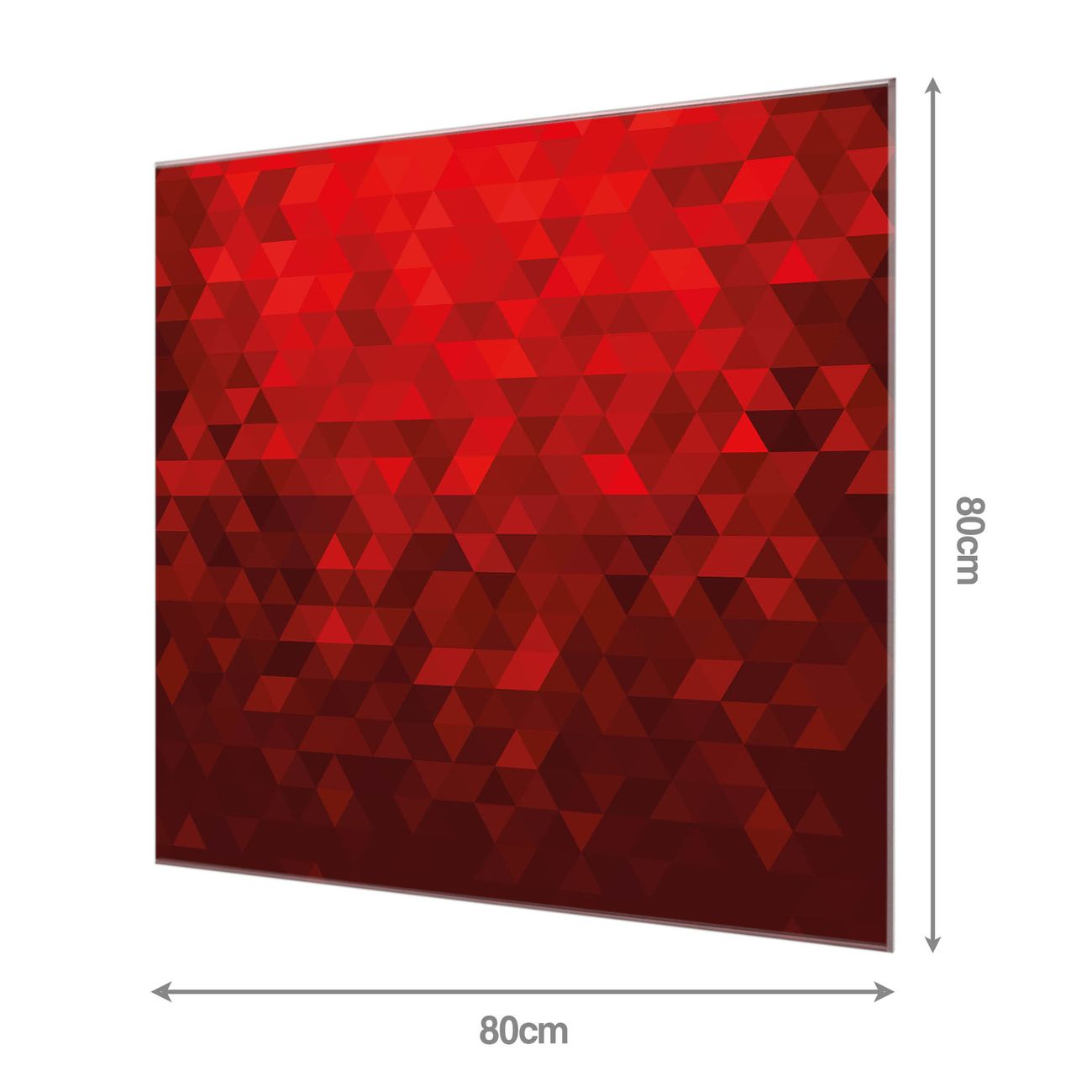Unsere einzigartigen Glasbilder im Querformat von banjado mit Motiv Dreiecke Rot sind der absolute Hingucker! Unsere Banjado Glasbilder sind sehr begehrt, weil sie top verarbeitet sind und sich ganz leicht montieren lassen. Schon mit wenigen Handgriffen hängen sie an der Wand und strahlen mit höchster brillianz. Durch die Ramenlose Herstellung schwebt das Echtglasbild förmlich an der Wand. Das Motiv erscheint besonders ausdrucksstark und hochwertig und ist hinter dem Echtglas geschützt.
