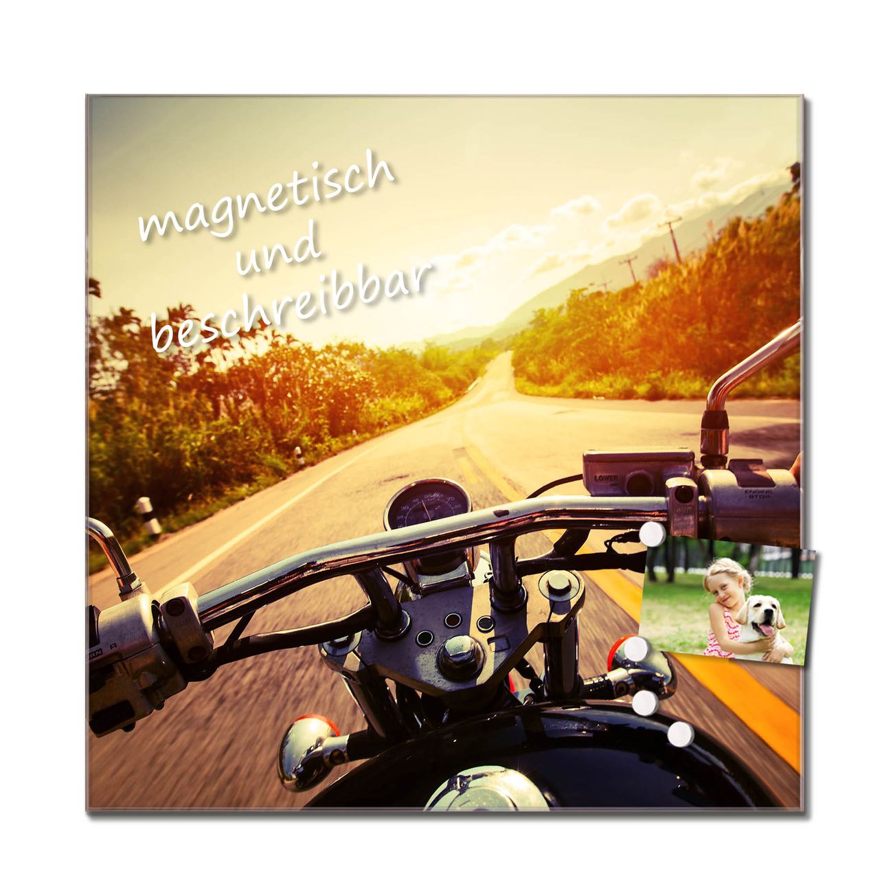Unsere einzigartigen Glasbilder im Querformat von banjado mit Motiv Easy Rider sind der absolute Hingucker! Unsere Banjado Glasbilder sind sehr begehrt, weil sie top verarbeitet sind und sich ganz leicht montieren lassen. Schon mit wenigen Handgriffen hängen sie an der Wand und strahlen mit höchster brillianz. Durch die Ramenlose Herstellung schwebt das Echtglasbild förmlich an der Wand. Das Motiv erscheint besonders ausdrucksstark und hochwertig und ist hinter dem Echtglas geschützt.