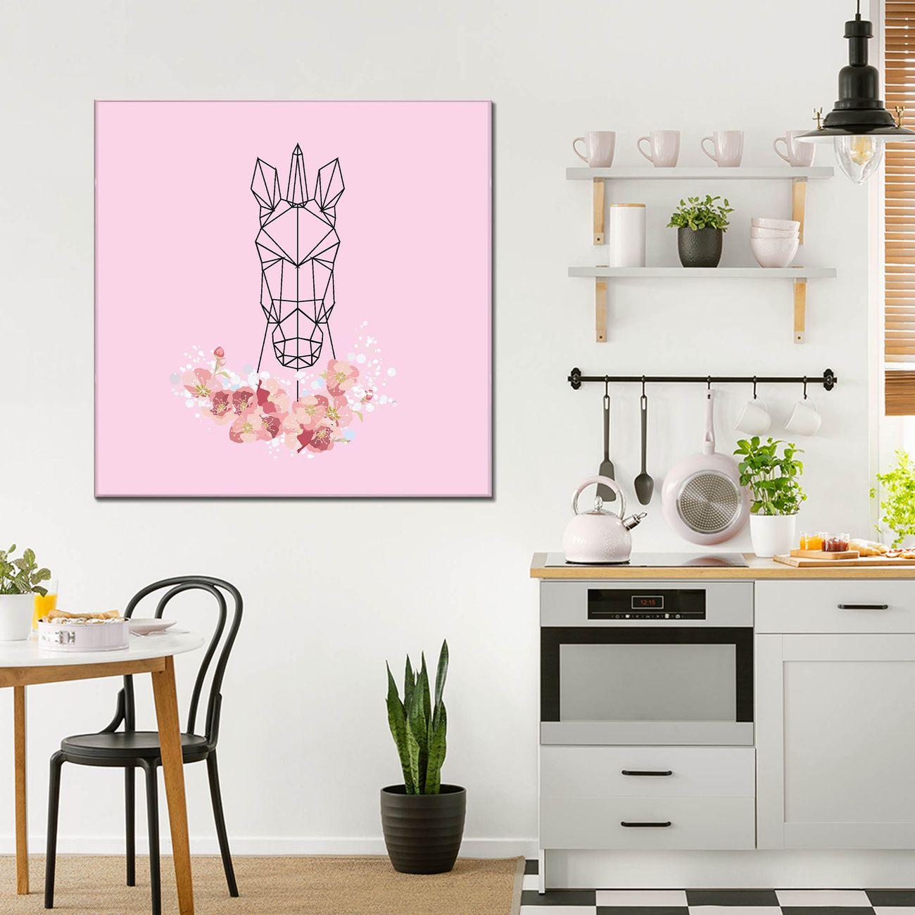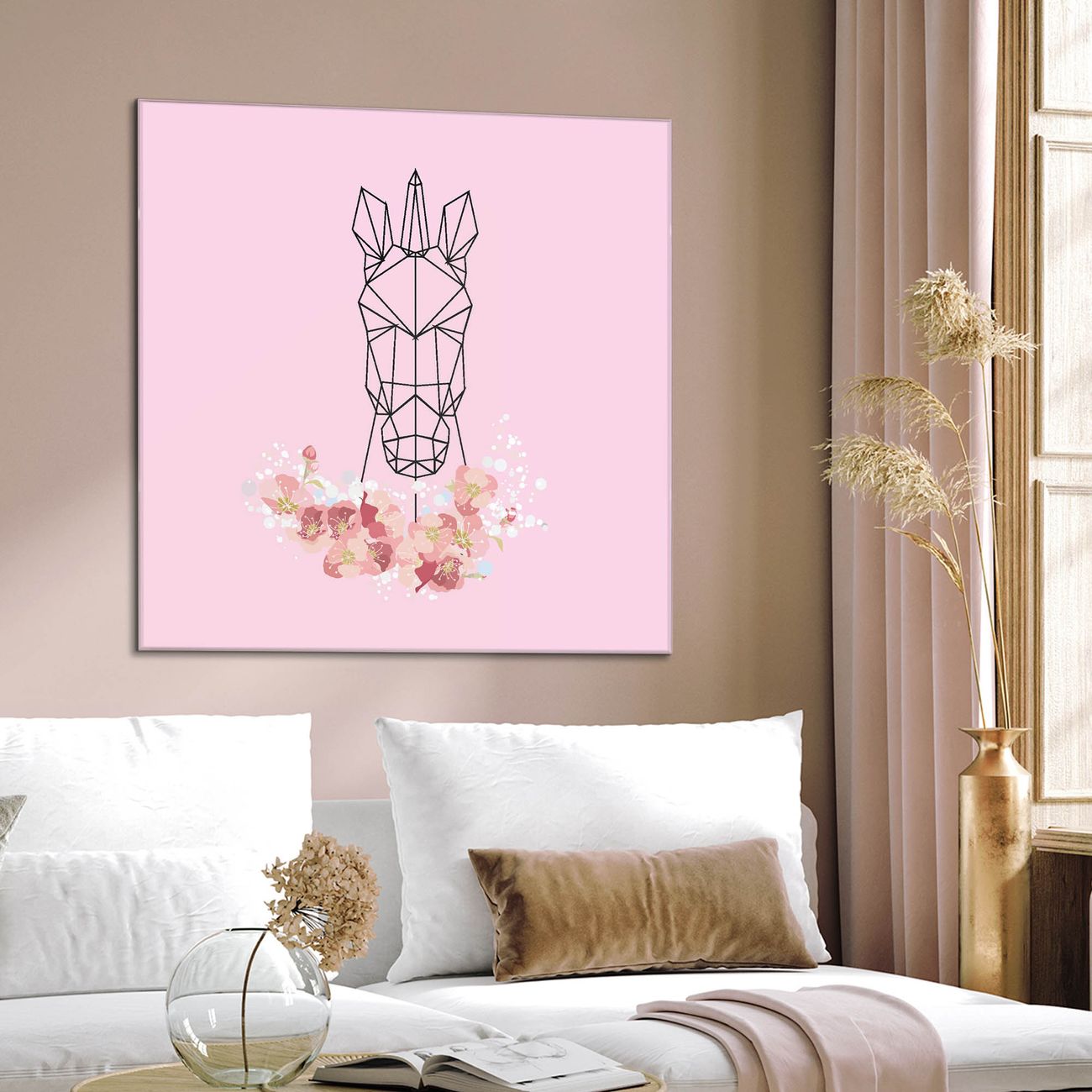 Quadratisches Wandbild aus Glas Einhorn Poygon