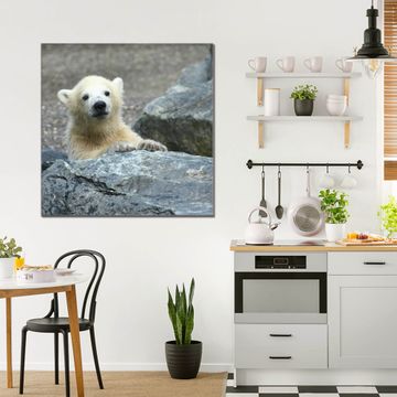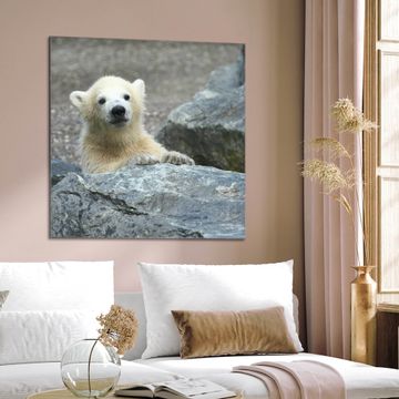 Quadratisches Wandbild aus Glas Eisbär Baby