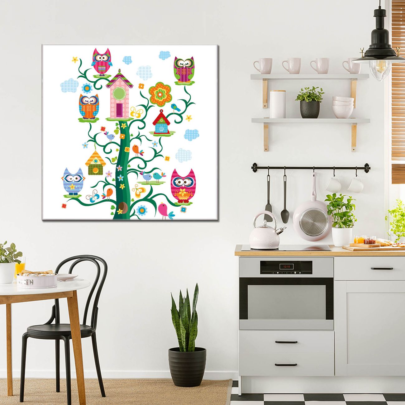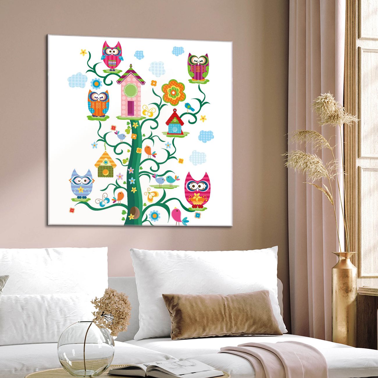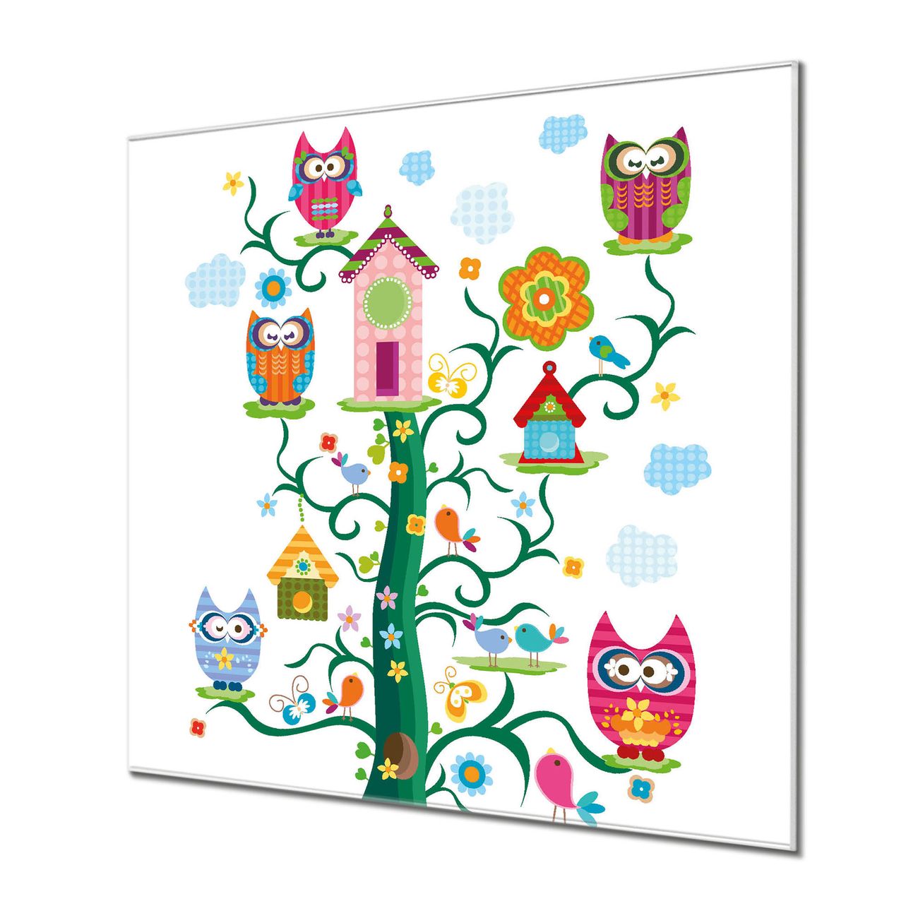 Quadratisches Wandbild aus Glas Eulenfamilie