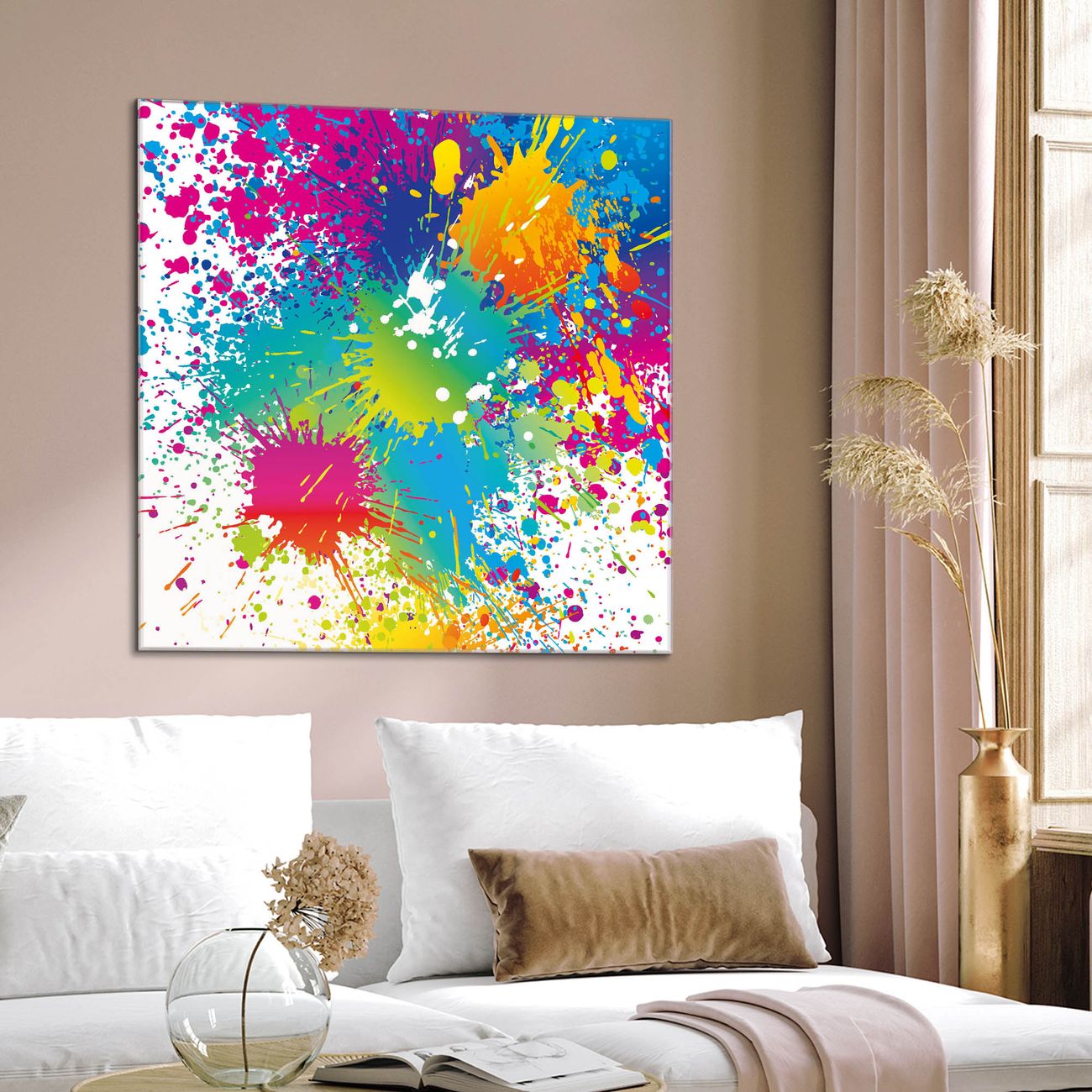 Unsere einzigartigen Glasbilder im Querformat von banjado mit Motiv Farbspritzer sind der absolute Hingucker! Unsere Banjado Glasbilder sind sehr begehrt, weil sie top verarbeitet sind und sich ganz leicht montieren lassen. Schon mit wenigen Handgriffen hängen sie an der Wand und strahlen mit höchster brillianz. Durch die Ramenlose Herstellung schwebt das Echtglasbild förmlich an der Wand. Das Motiv erscheint besonders ausdrucksstark und hochwertig und ist hinter dem Echtglas geschützt.