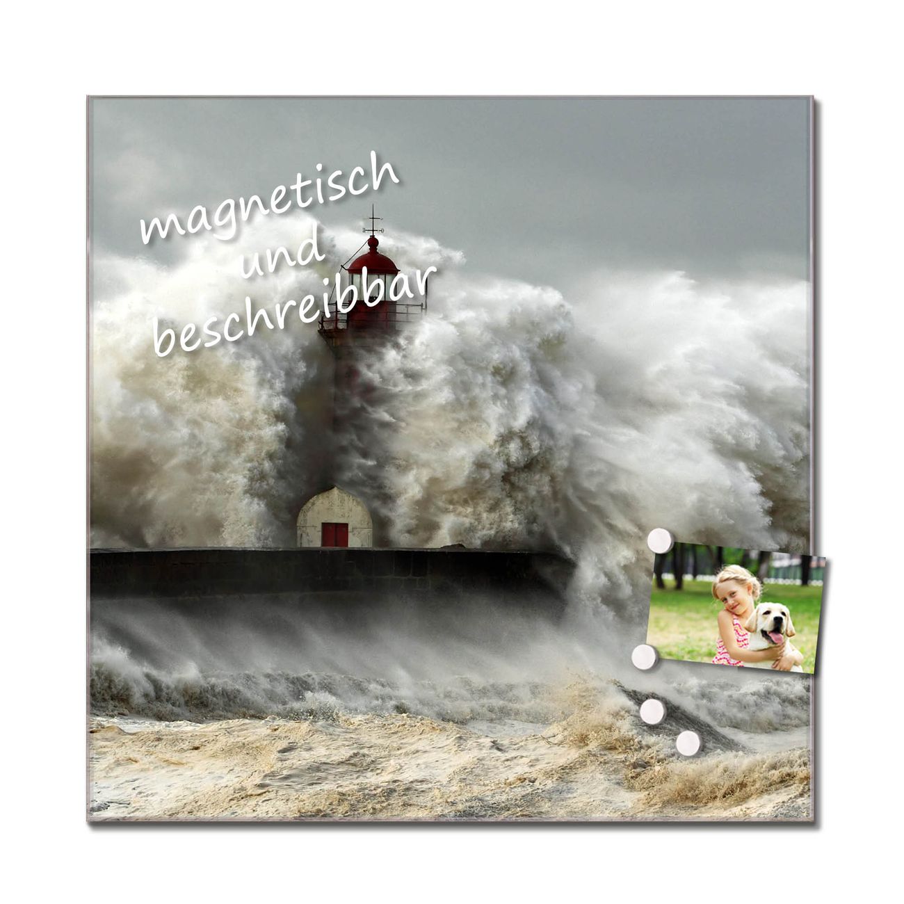 Das Glasbild besteht aus 4mm gehärtetem zertifiziertem ESG Sicherheitsglas, die Rückwand aus einem magnetischen Stahlblech. Durch die superflache Bauweise haben Sie die Wahl aus einer Vielzahl von Befestigungsmöglichkeiten. Sie können das Wandbild mit einem Montagekleber superflach an die Wand kleben oder Sie wählen eines unserer passenden Befestigungssets, welches eine optimale Montage garantiert. Durch die mitgelieferten 4 Neodym-Magnete ist Ihr Glaswandbild sofort einsatzbereit. Wir sind ein kleines Team aus dem Herzen von Sachsen und fertigen alle Artikel von Hand für Sie an. Wir entwerfen unsere Produkte selbst mit großer Liebe zum Detail.
