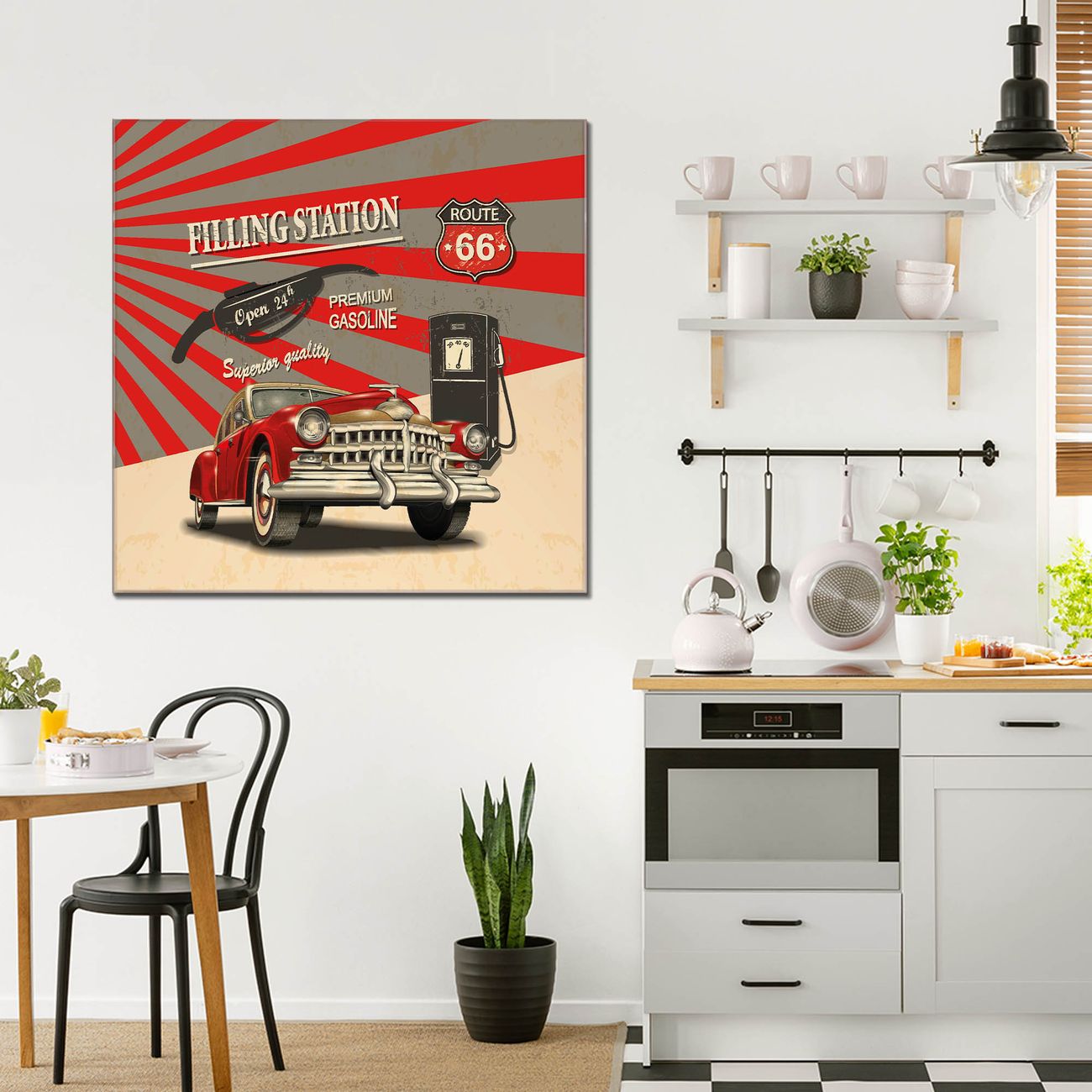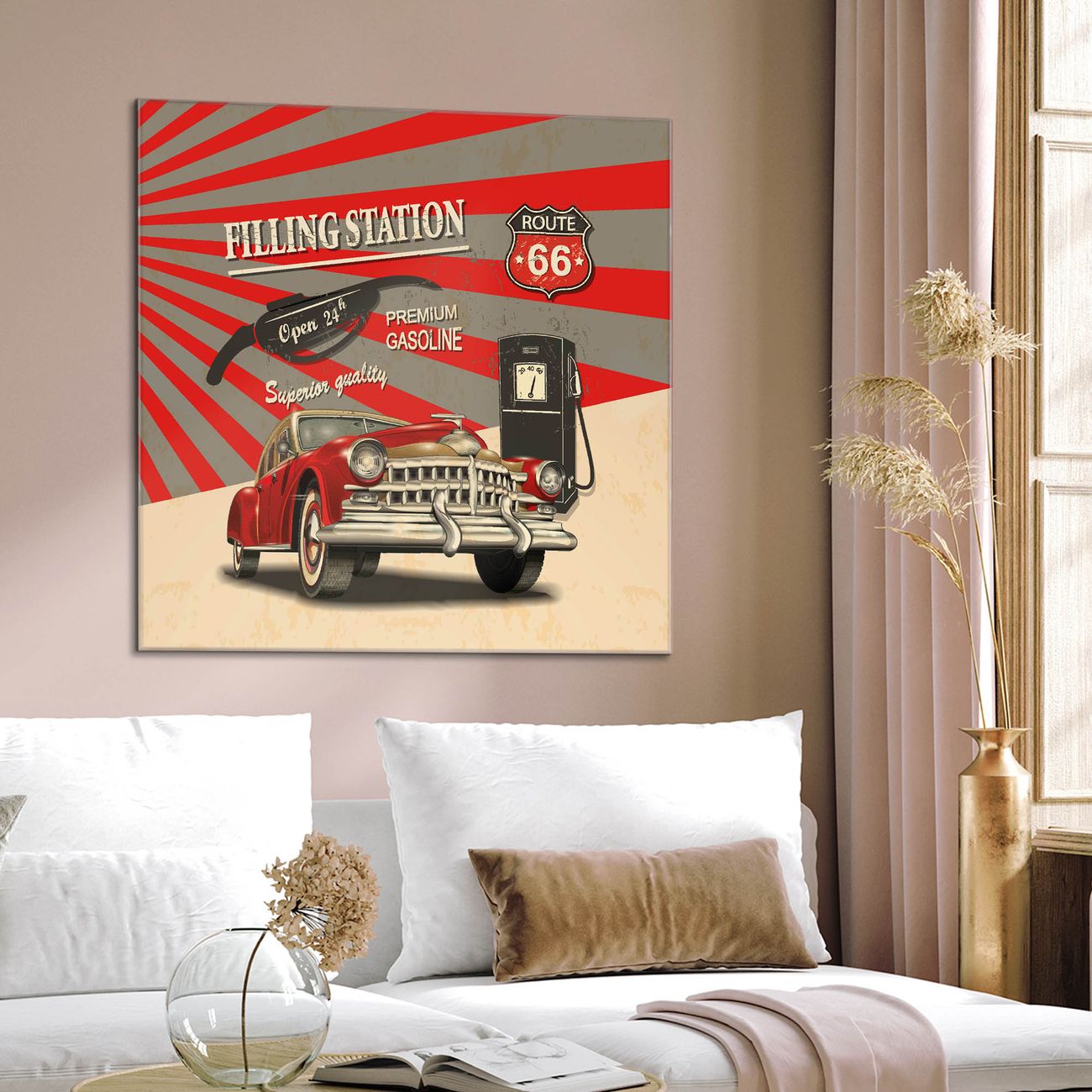Unsere einzigartigen Glasbilder im Querformat von banjado mit Motiv Filling Station sind der absolute Hingucker! Unsere Banjado Glasbilder sind sehr begehrt, weil sie top verarbeitet sind und sich ganz leicht montieren lassen. Schon mit wenigen Handgriffen hängen sie an der Wand und strahlen mit höchster brillianz. Durch die Ramenlose Herstellung schwebt das Echtglasbild förmlich an der Wand. Das Motiv erscheint besonders ausdrucksstark und hochwertig und ist hinter dem Echtglas geschützt.