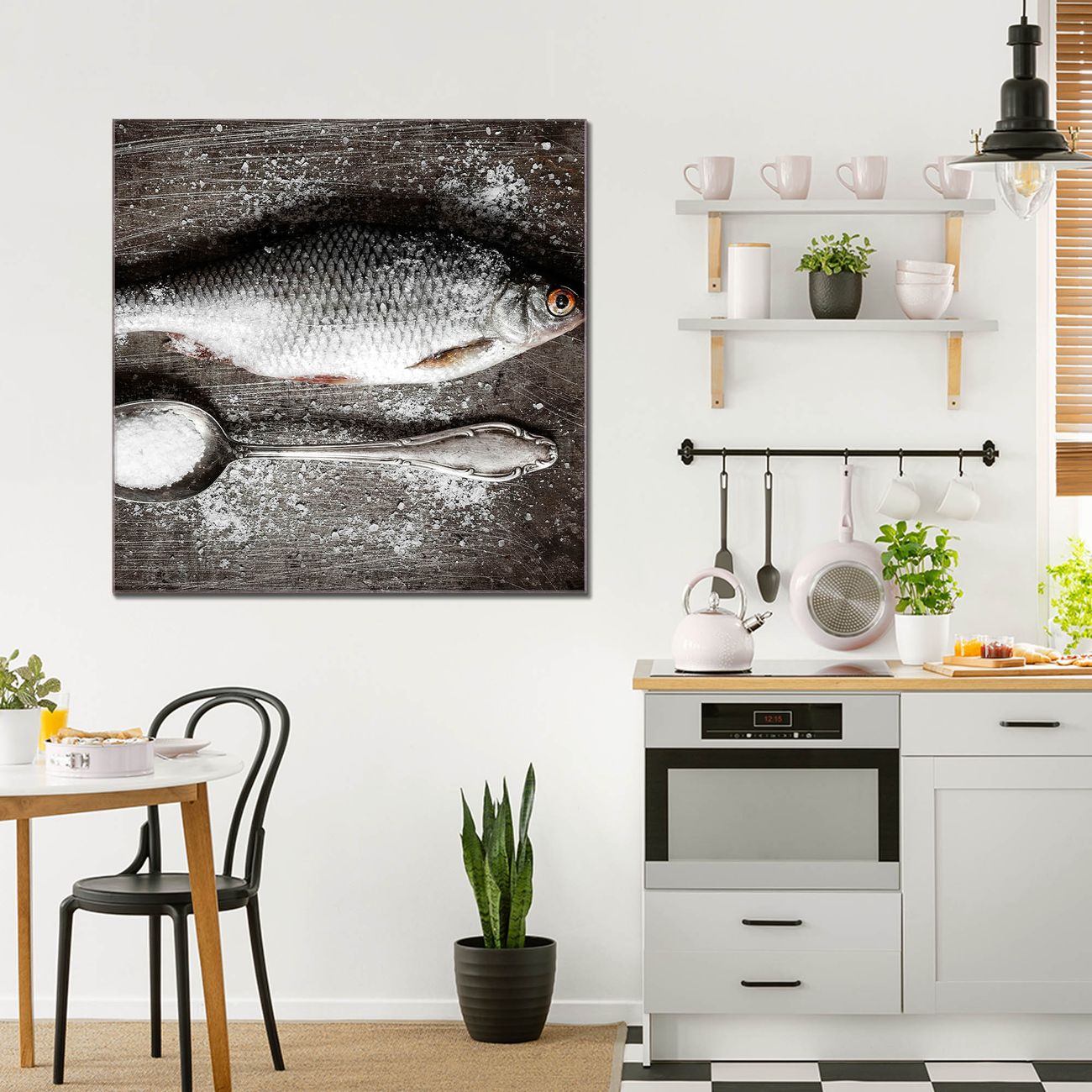 Quadratisches Wandbild aus Glas Fisch Und Salz