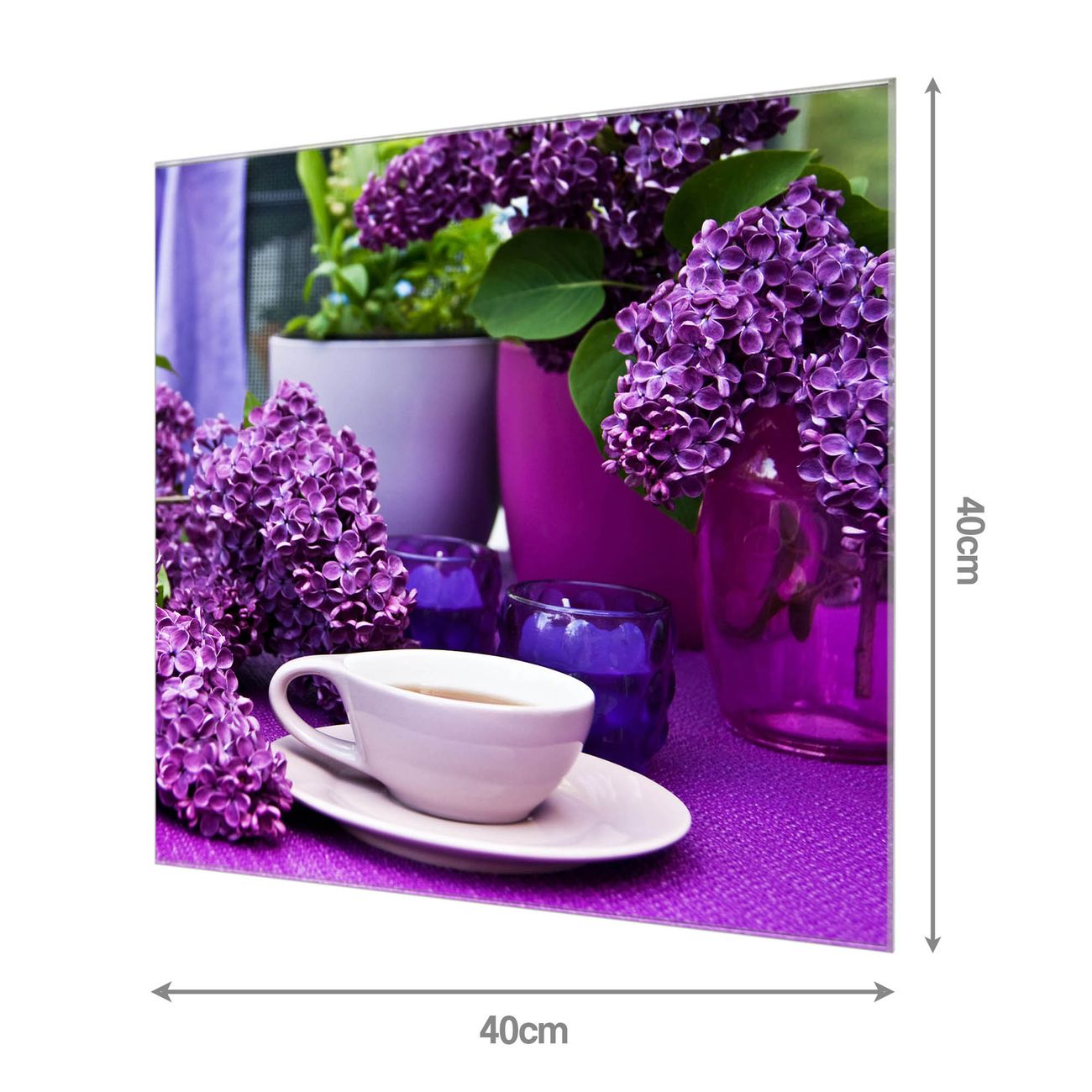 Quadratisches Wandbild aus Glas Flieder