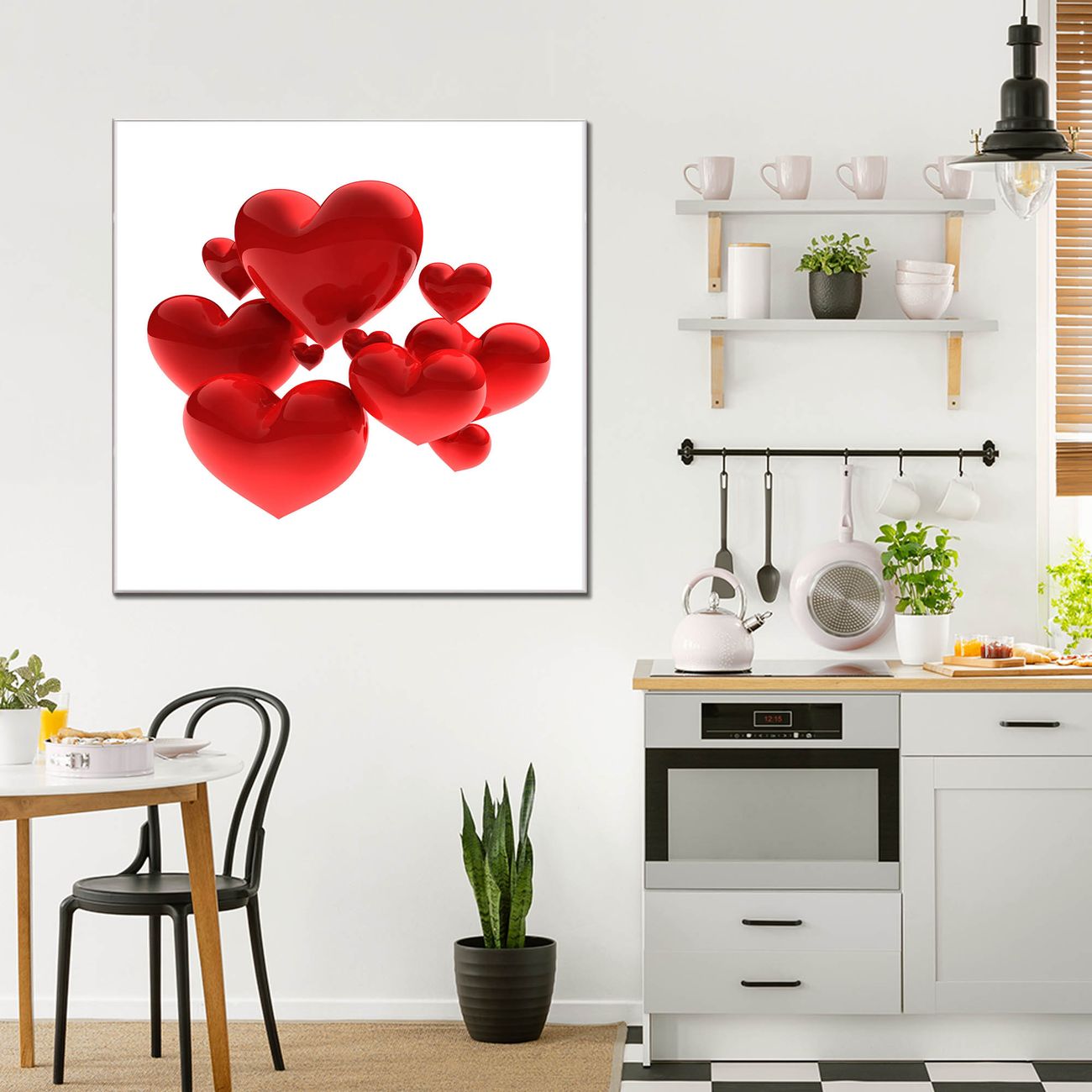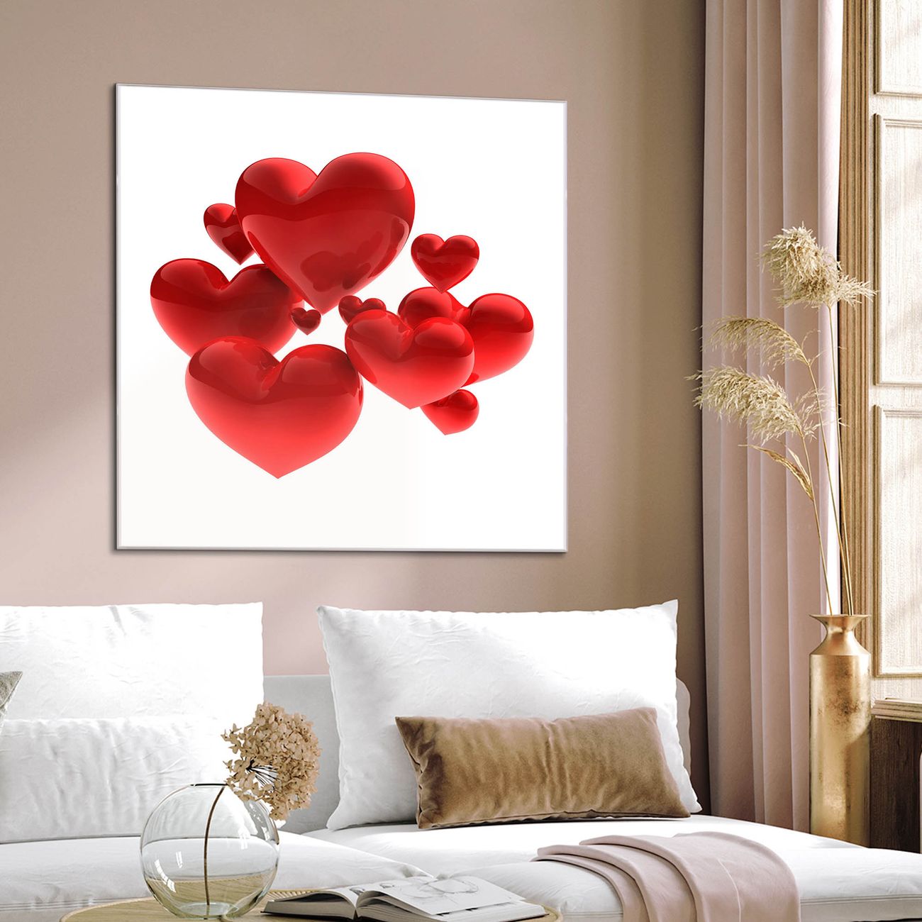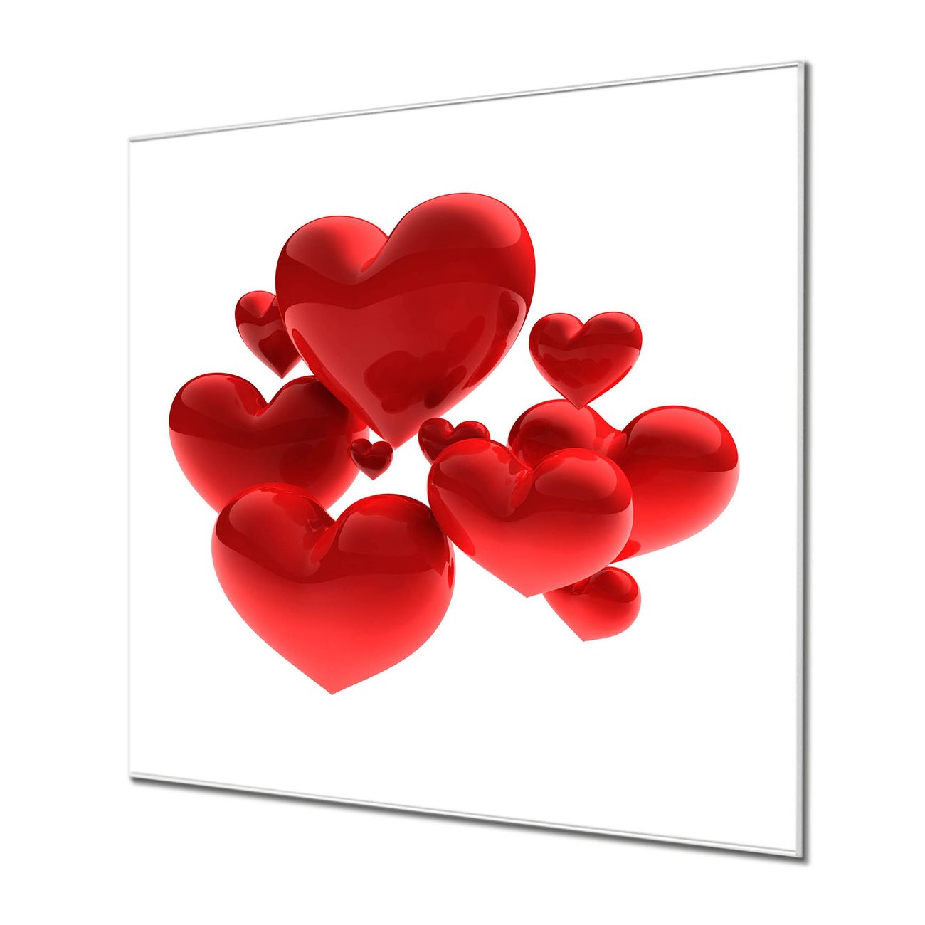 Quadratisches Wandbild aus Glas Fliegende Herzen