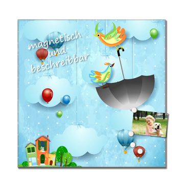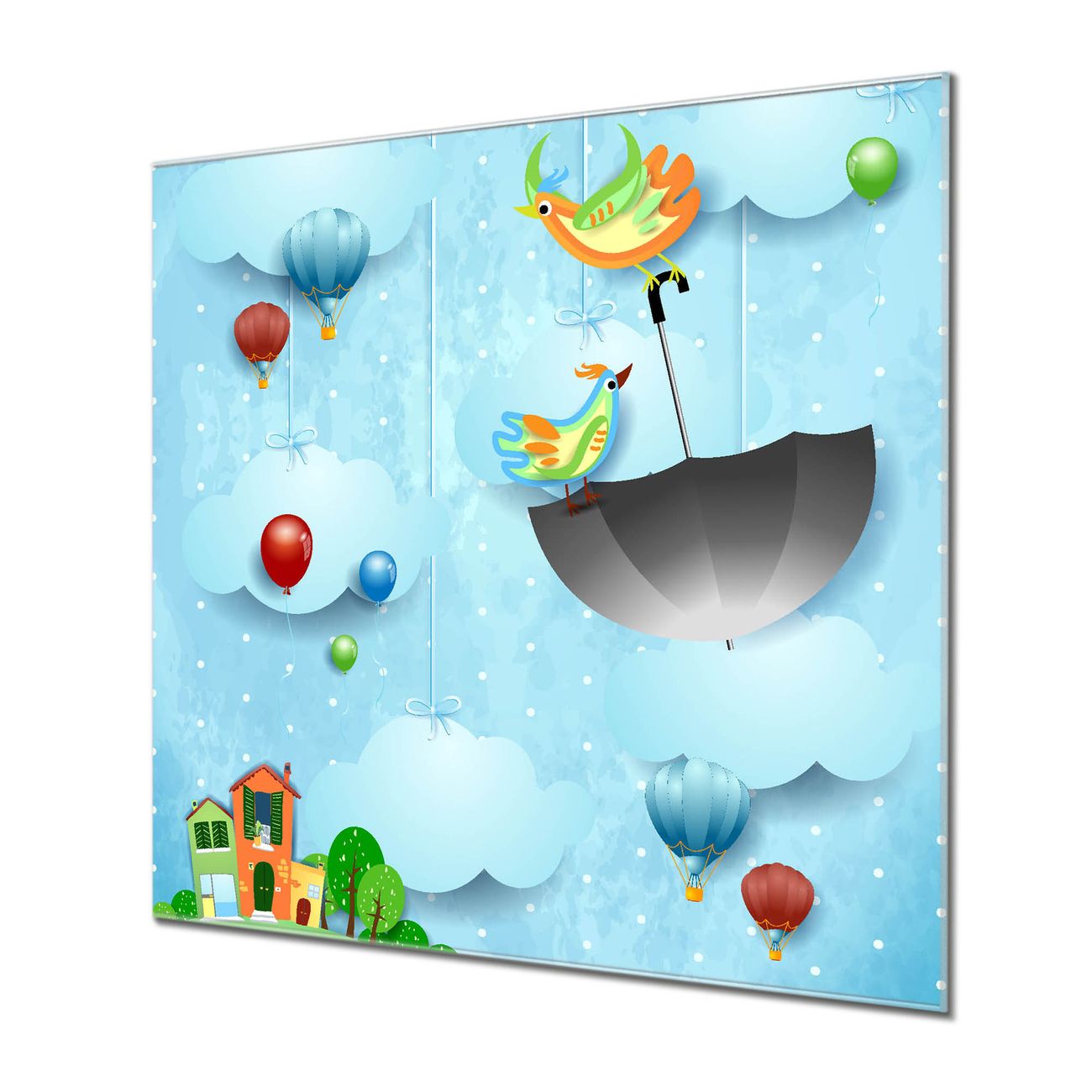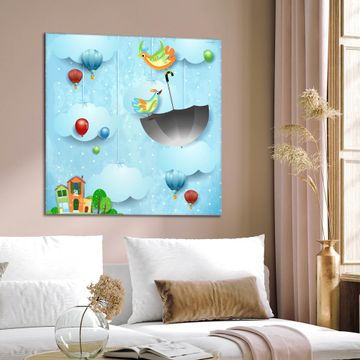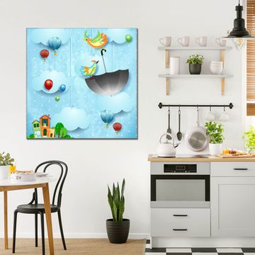 Quadratisches Wandbild aus Glas fliegender Regenschirm