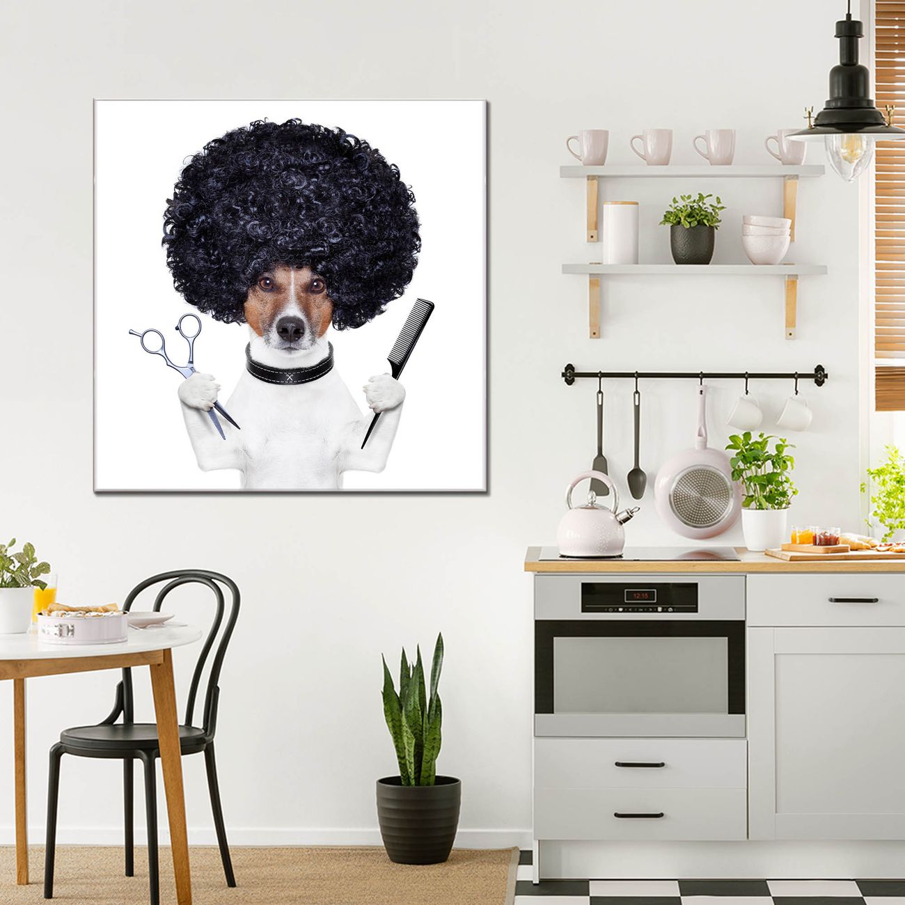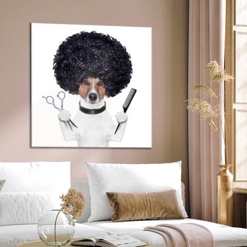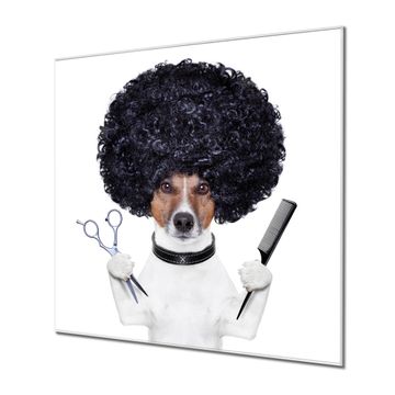 Quadratisches Wandbild aus Glas Friseur Jack Russel