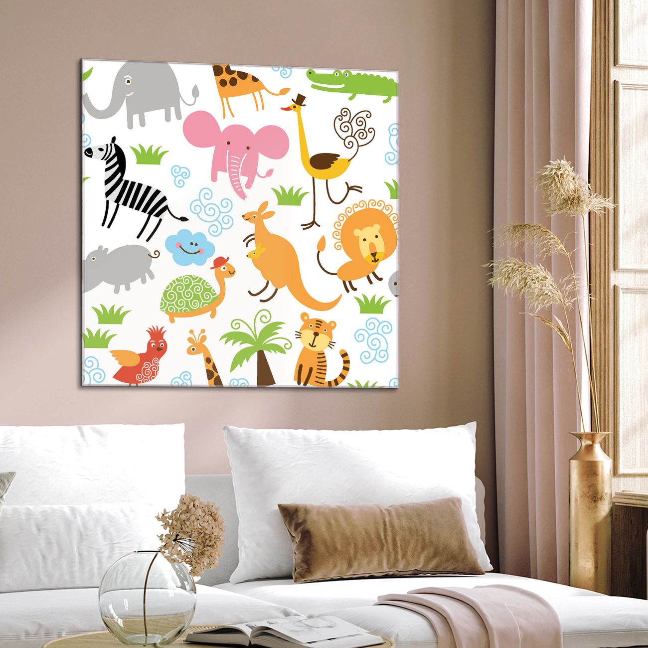 Quadratisches Wandbild aus Glas Fröhliche Tiere