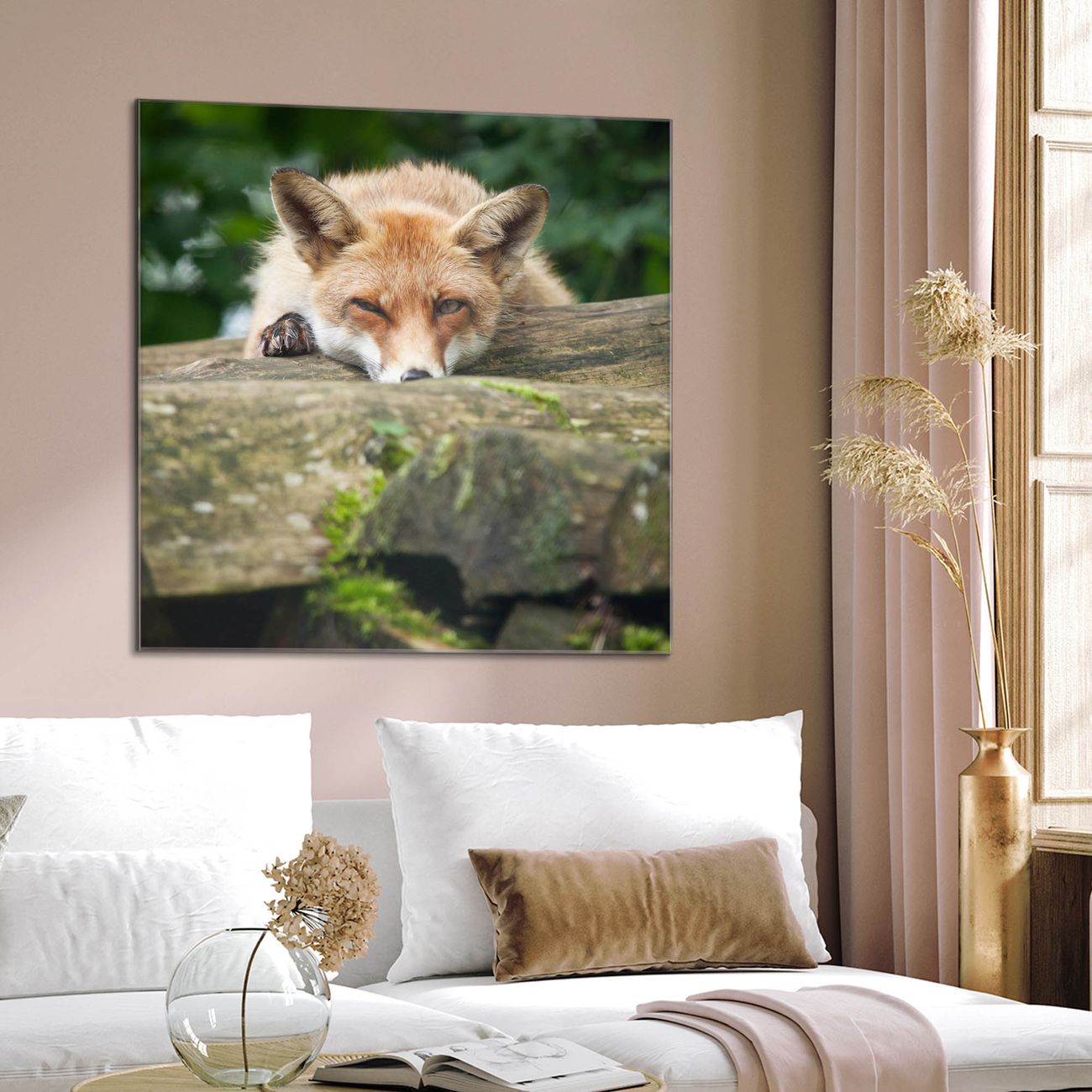 Quadratisches Wandbild aus Glas Fuchs Relax