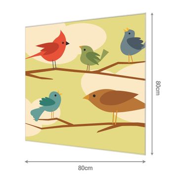 Unsere einzigartigen Glasbilder im Querformat von banjado mit Motiv Fünf Vögel sind der absolute Hingucker! Unsere Banjado Glasbilder sind sehr begehrt, weil sie top verarbeitet sind und sich ganz leicht montieren lassen. Schon mit wenigen Handgriffen hängen sie an der Wand und strahlen mit höchster brillianz. Durch die Ramenlose Herstellung schwebt das Echtglasbild förmlich an der Wand. Das Motiv erscheint besonders ausdrucksstark und hochwertig und ist hinter dem Echtglas geschützt.